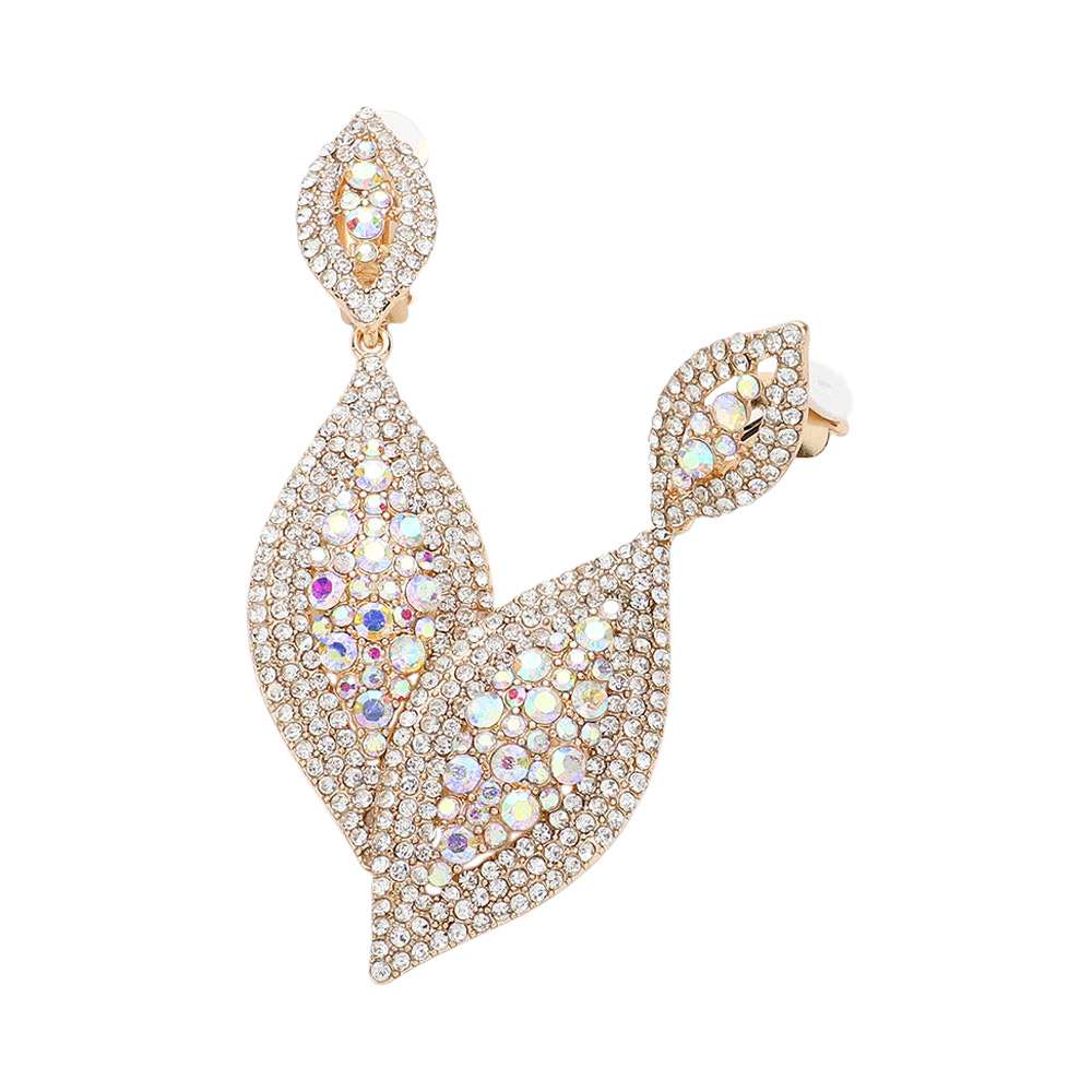 • These leaf-shaped drop clip earrings bring refined sparkle to any look with their intricate pavĂ© detailing and elongated silhouette. Designed for effortless elegance, they offer a radiant finish that enhances both special-occasion and everyday styling with graceful brilliance.