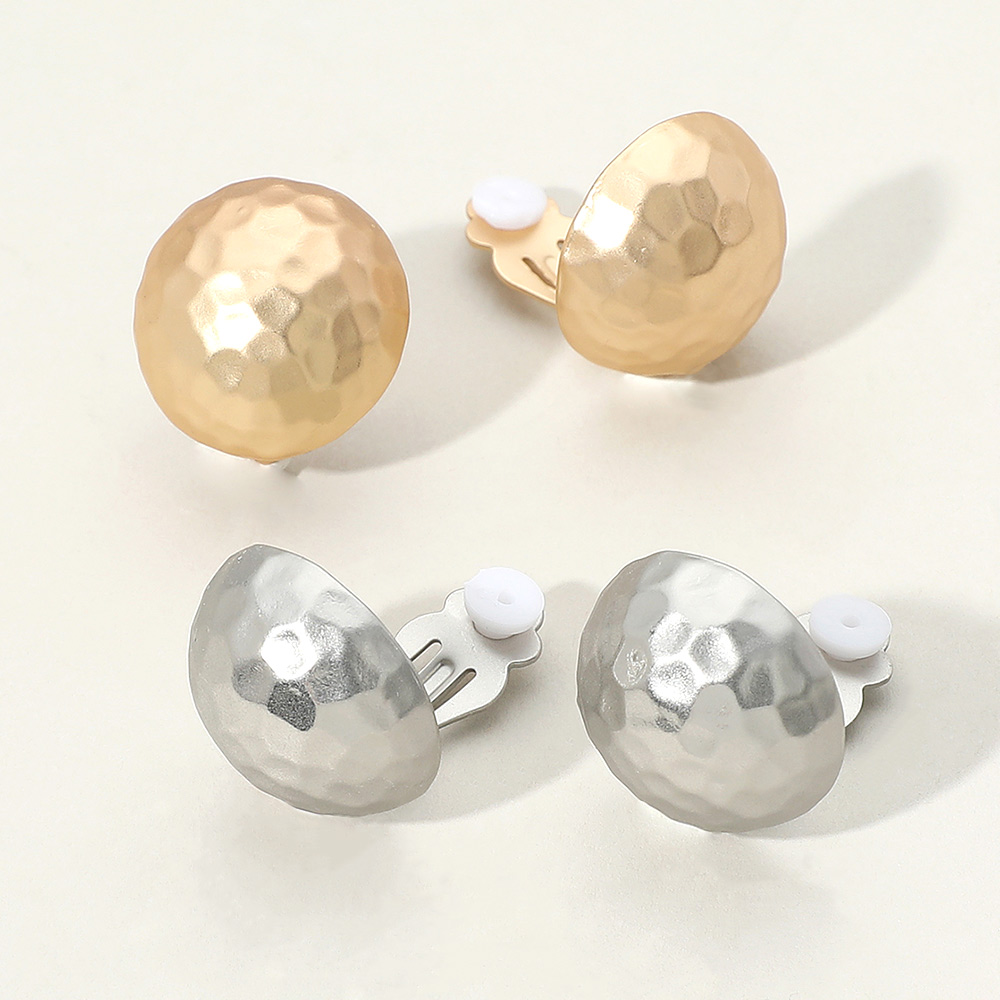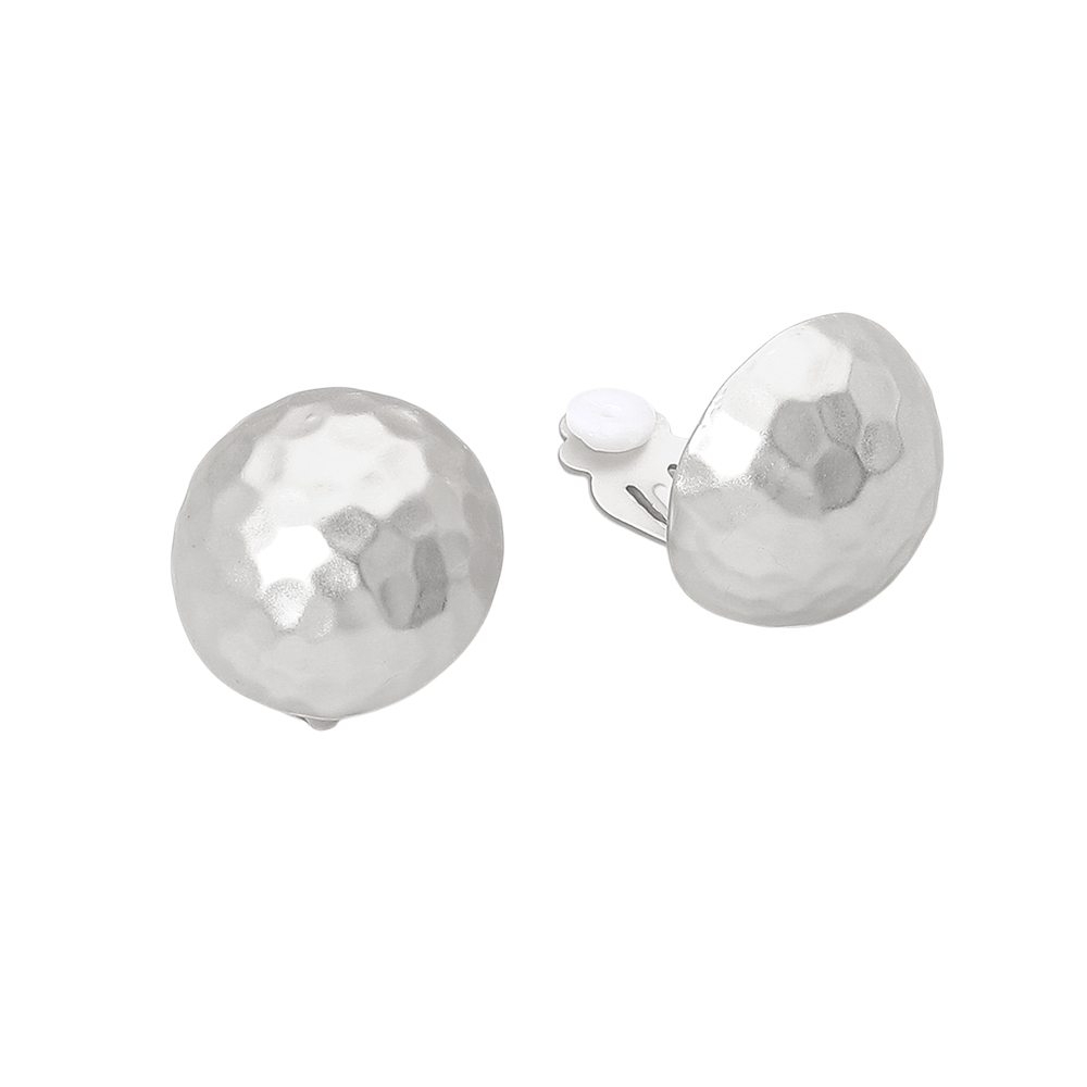 • Add a touch of modern texture with these hammered dome clip-on earrings. Featuring a bold rounded silhouette with a sleek reflective finish, they offer effortless elegance and comfort. Perfect for elevating both casual and formal outfits with understated sophistication.