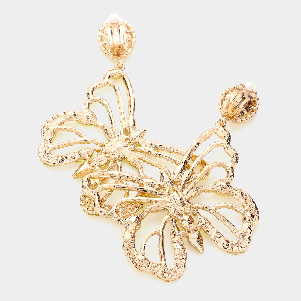 Multi Stone Embellished Butterfly Dangle Clip on Evening Earrings