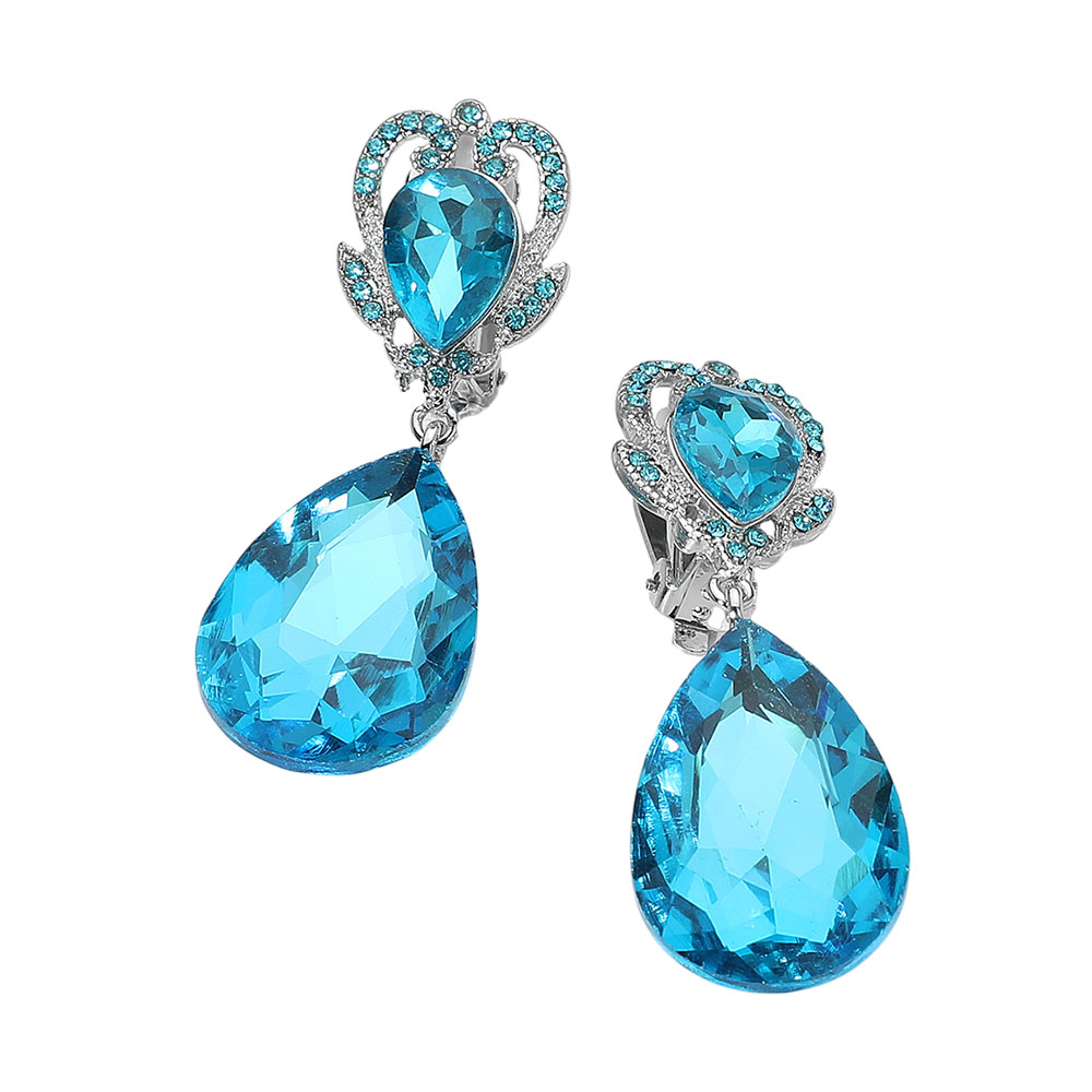 Ornate Top Faceted Teardrop Stone Dangle Clip On Evening Earrings