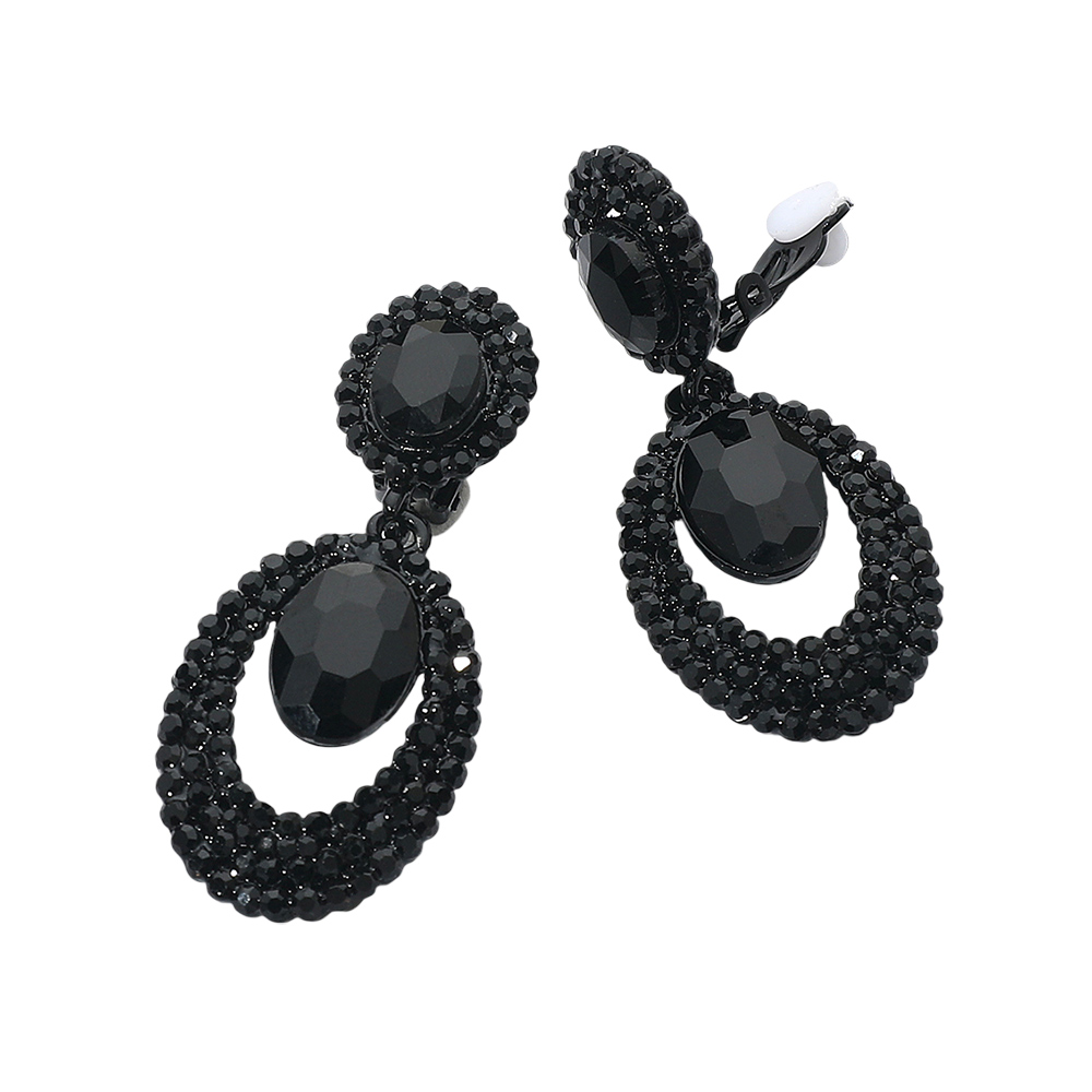 Oval Halo Drop Evening Clip On Earrings Oval Halo Drop Evening Clip On Earrings
