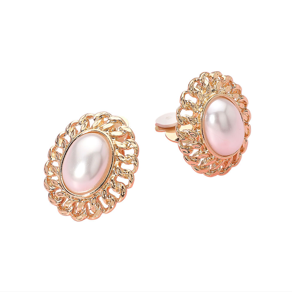 Details • Size : 1" X 1.2" • Clip On • Classic oval dome clip-on earrings featuring a smooth centerpiece surrounded by an intricate textured frame. Designed for comfort without pierced ears, these elegant statement studs bring a timeless vintage-inspired touch to any look. • Lead and Nickel Compliant