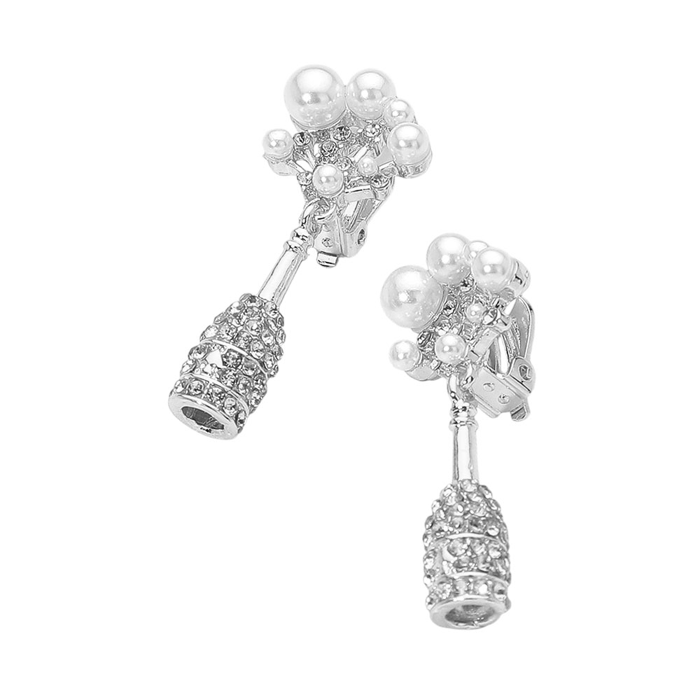 Pearl Cluster Champagne Bottle Drop Clip On Earrings