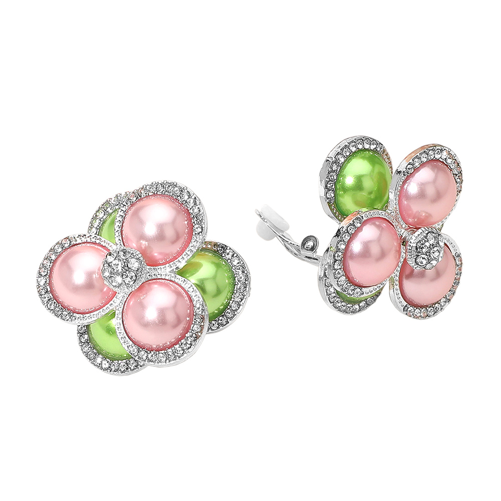 • Chic pearl cluster flower clip-on earrings designed with glossy petals and sparkling crystal accents. A stylish and comfortable accessory that brings an elegant touch to any outfit, perfect for both everyday wear and special occasions without the need for pierced ears.