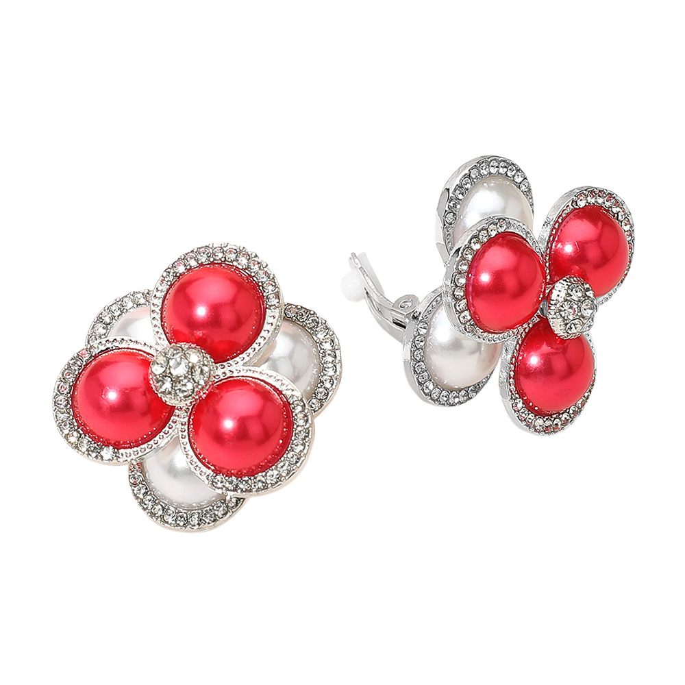 Details • Size : 1.25" X 1.25" • Clip On • Chic pearl cluster flower clip-on earrings designed with glossy petals and sparkling crystal accents. A stylish and comfortable accessory that brings an elegant touch to any outfit, perfect for both everyday wear and special occasions without the need for pierced ears. • Lead and Nickel Compliant