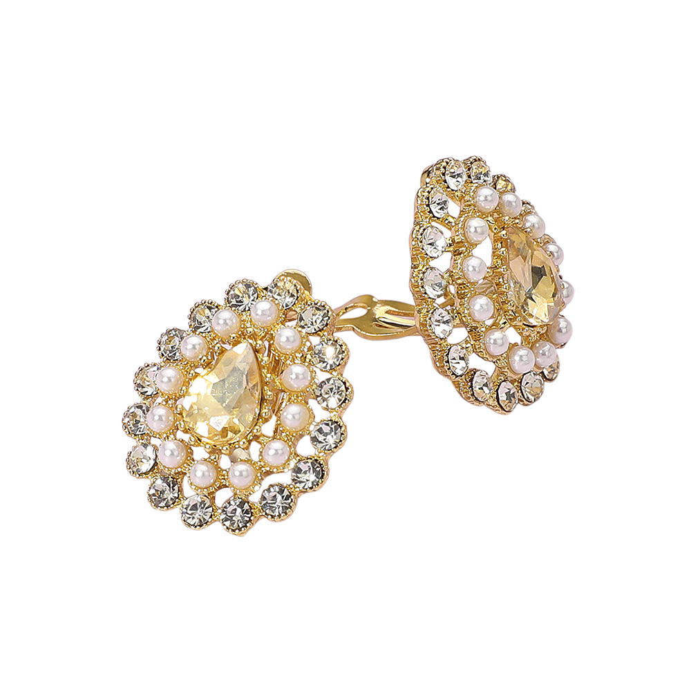 Details • Size : 0.8" X 1" • Clip On • Elevate your elegance with these pearl and crystal teardrop clip-on earrings. Featuring a radiant centerpiece framed by delicate accents, they offer timeless charm and sophistication. Perfect for formal occasions, celebrations, or adding a luxurious touch to everyday looks. • Lead and Nickel Compliant