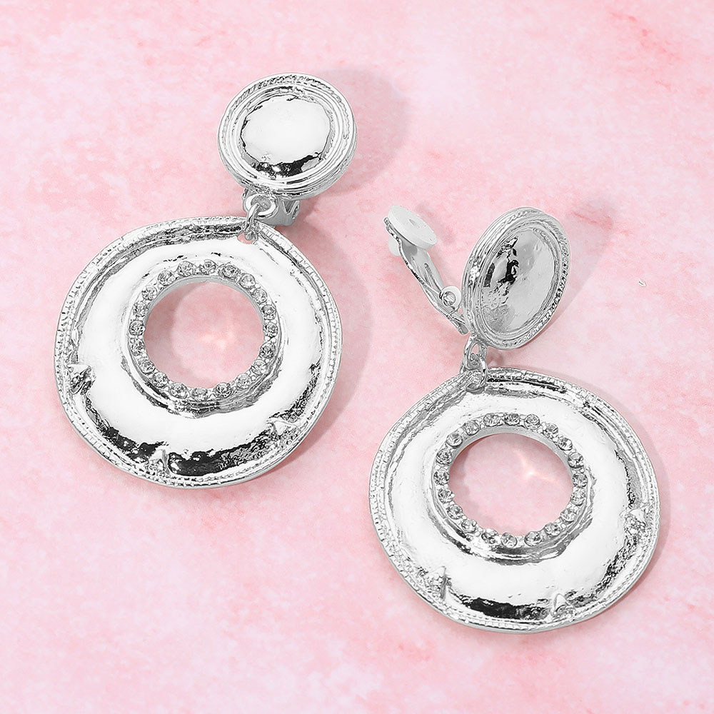 Rhinestone Accent Textured Metal Ring Drop Clip On Earrings Rhinestone Accent Textured Metal Ring Drop Clip On Earrings