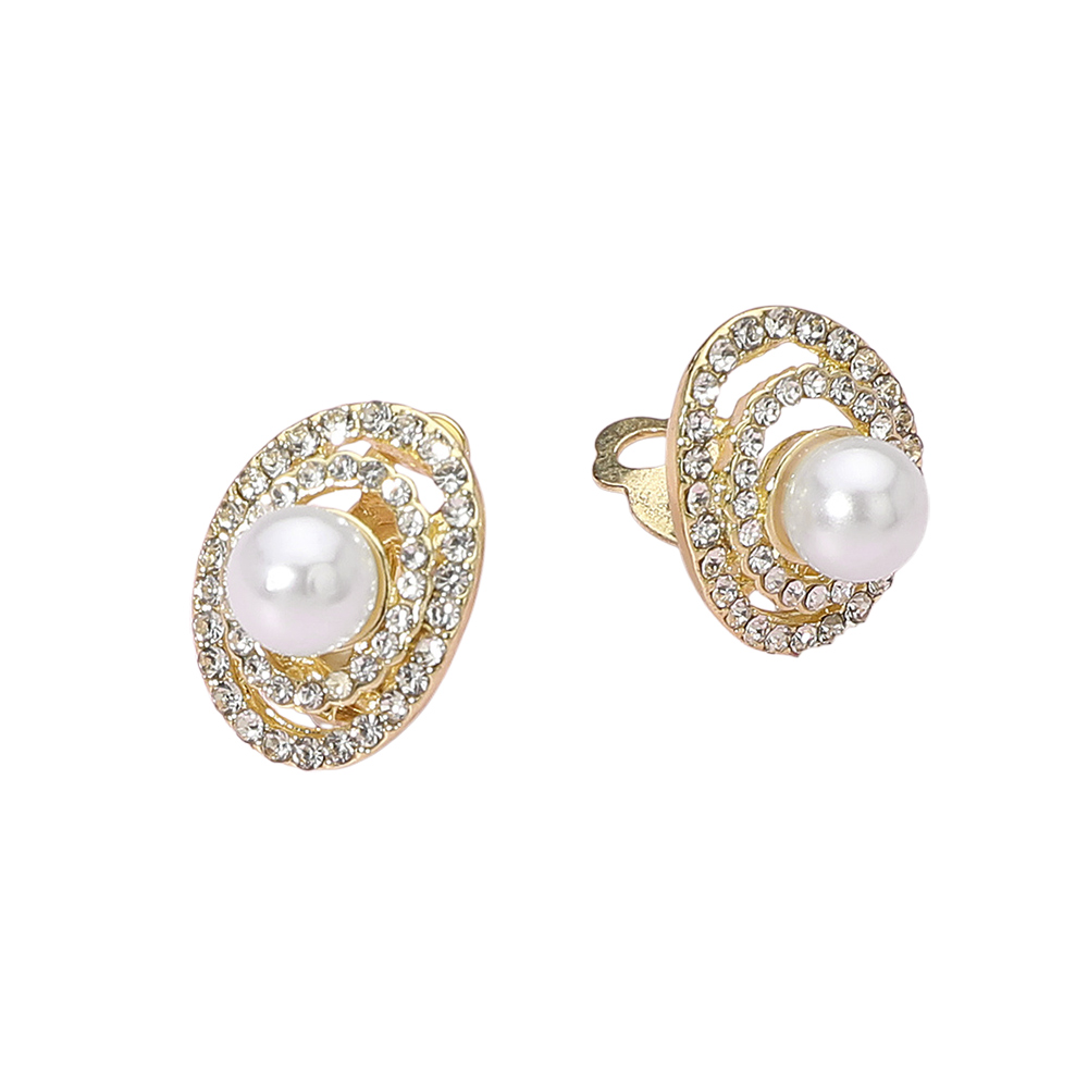 Details • Size : 0.6" X 0.8" • Clip On • Elevate your elegance with these crystal halo pearl clip-on earrings. Featuring a luminous centerpiece surrounded by sparkling accents in a refined circular design, they exude timeless sophistication. Perfect for formal events or adding a touch of glamour to everyday wear. • Lead and Nickel Compliant