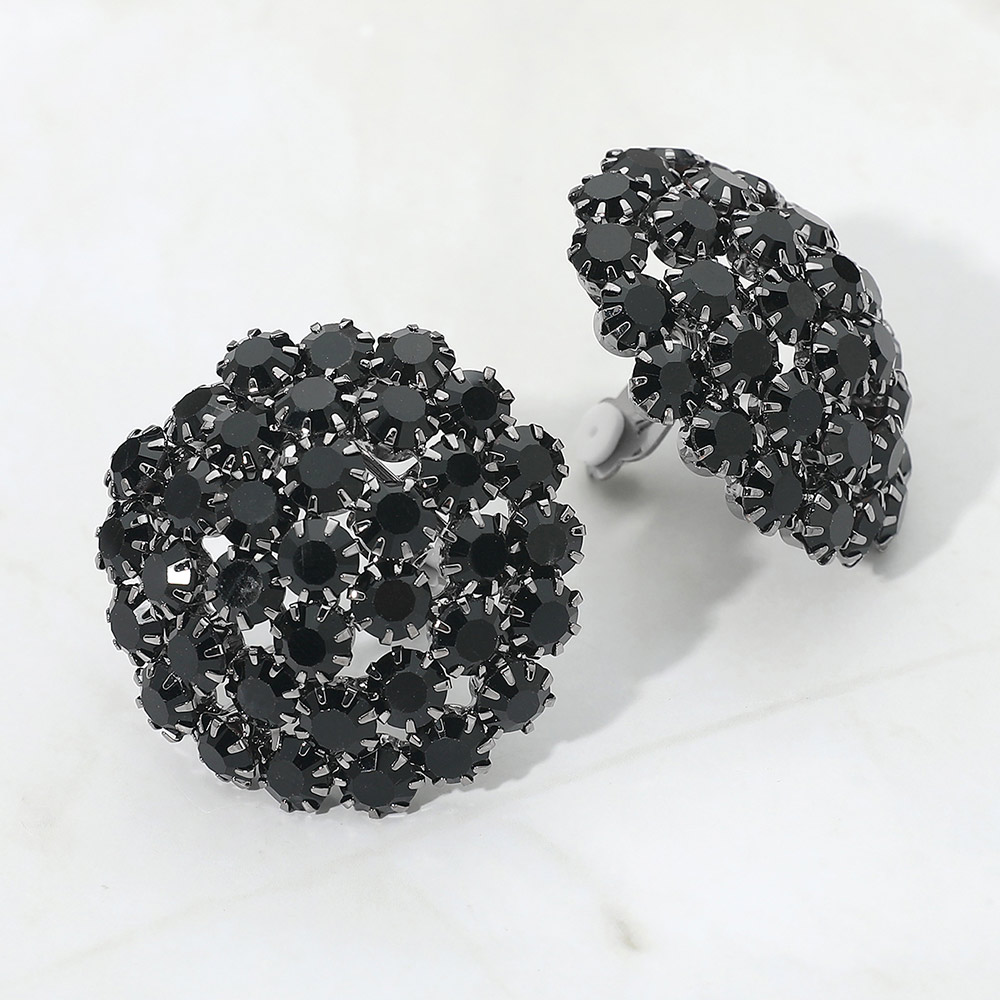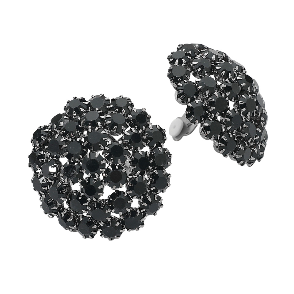 Round Rhinestone Cluster Embellished Evening Clip On Earrings