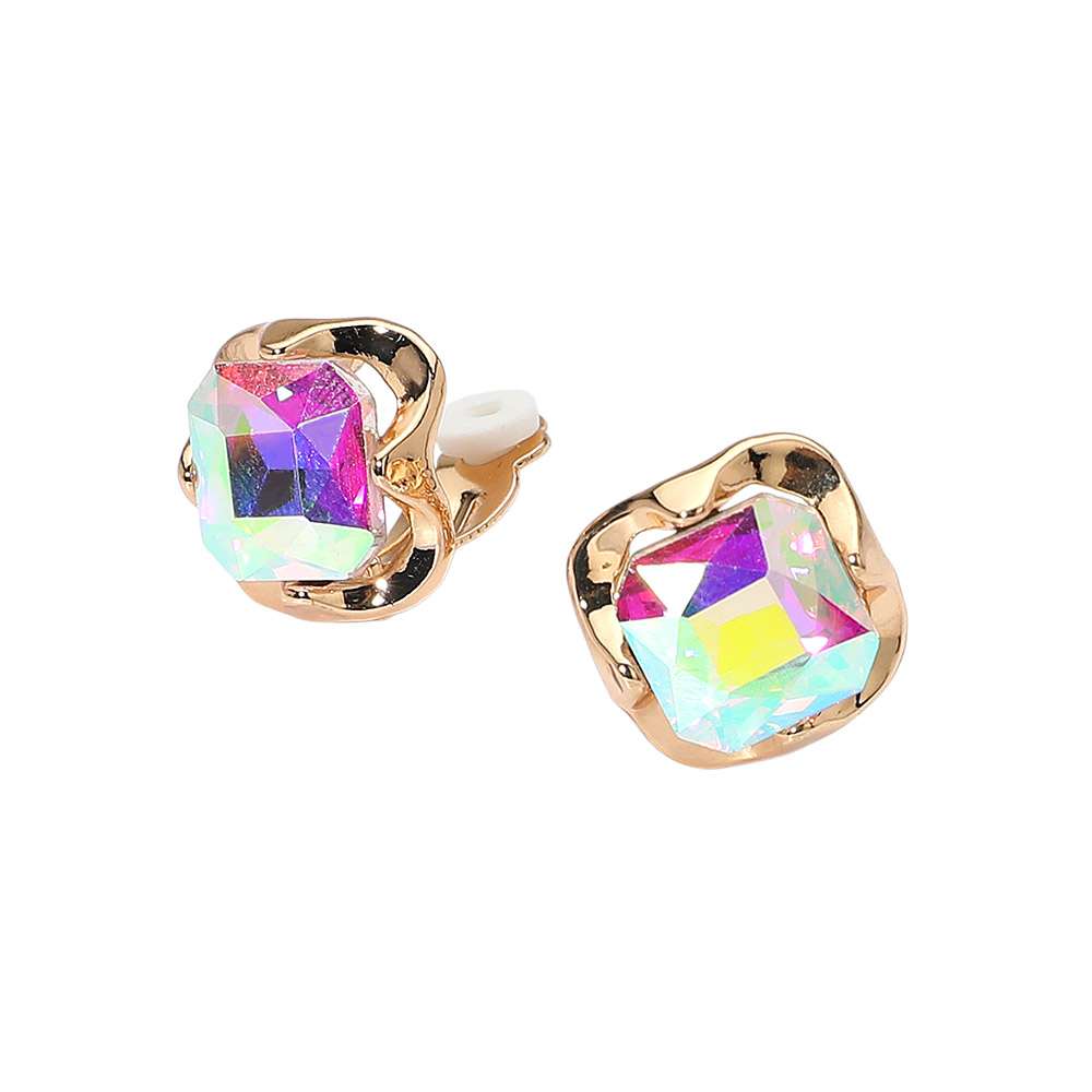 Details • Size : 0.6" X 0.6" • Clip On • Elegant square crystal clip-on earrings featuring a faceted gemstone design framed in a chic sculpted setting. Comfortable clip-on style adds timeless shine to both casual and dressy looks, perfect for effortless everyday elegance. • Lead and Nickel Compliant