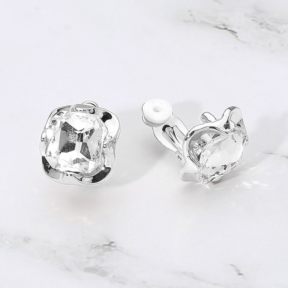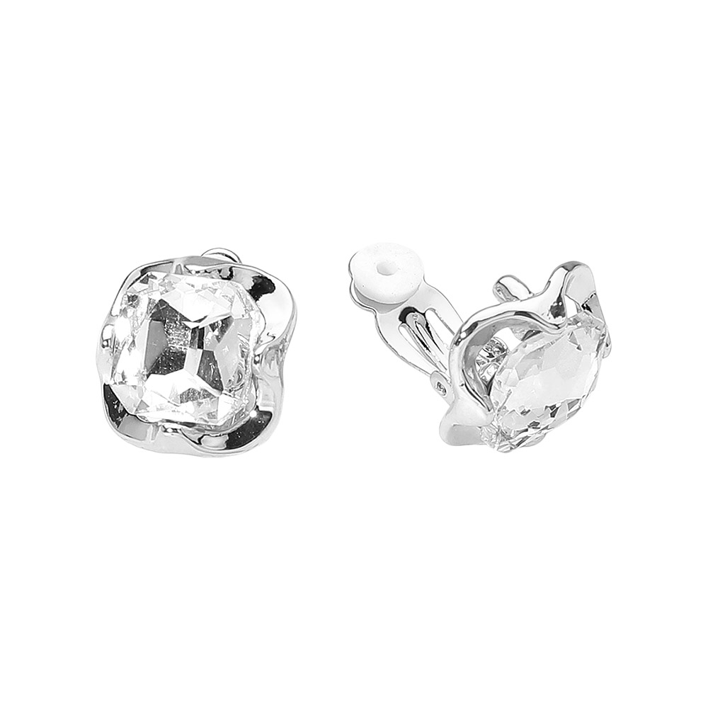 • Elegant square crystal clip-on earrings featuring a faceted gemstone design framed in a chic sculpted setting. Comfortable clip-on style adds timeless shine to both casual and dressy looks, perfect for effortless everyday elegance.