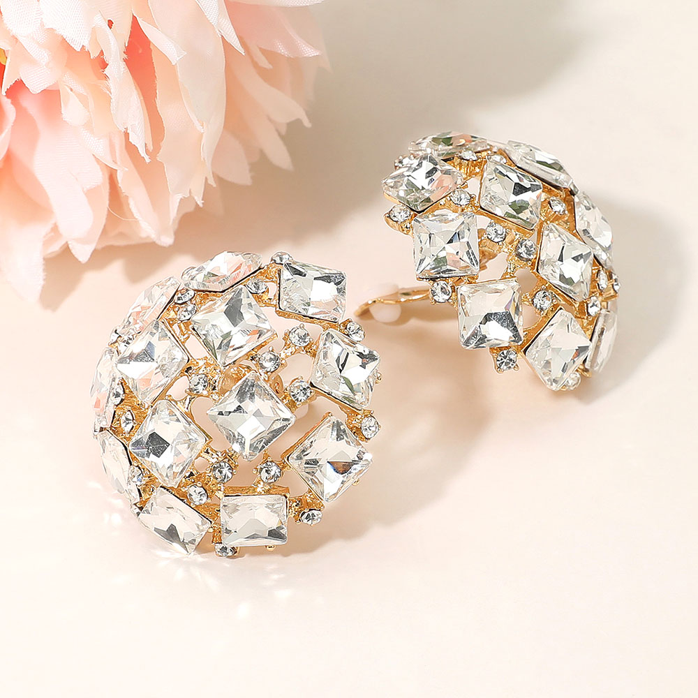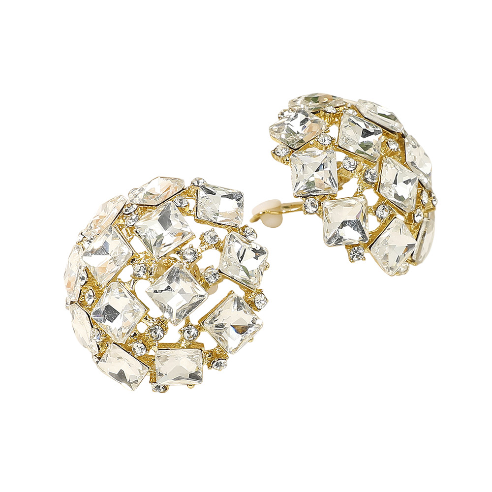 Square Stone Cluster Embellished Dome Evening Clip On Earrings Square Stone Cluster Embellished Dome Evening Clip On Earrings Square Stone Cluster Embellished Dome Evening Clip On Earrings