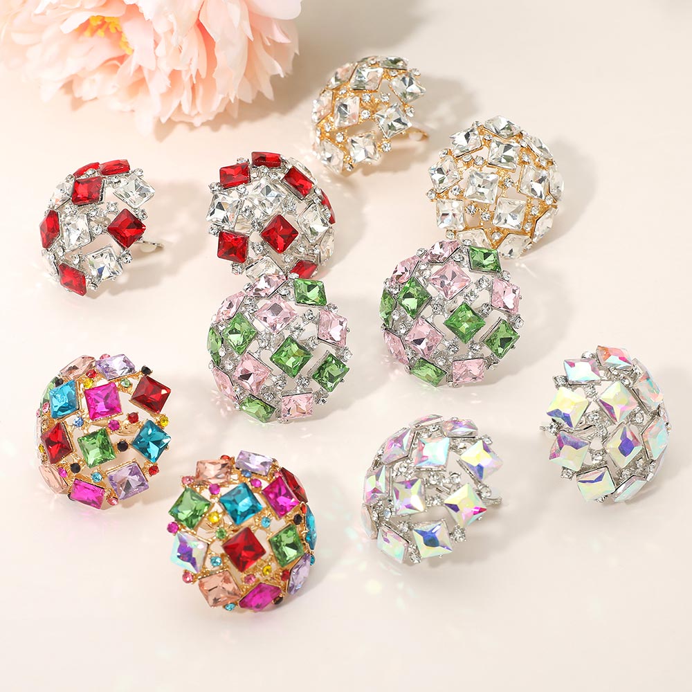 • Eye-catching rhinestone dome stud earrings with multi-faceted sparkle. Perfect for statement looks, parties, or adding glam to any outfit. Lightweight and comfortable to wear all day.