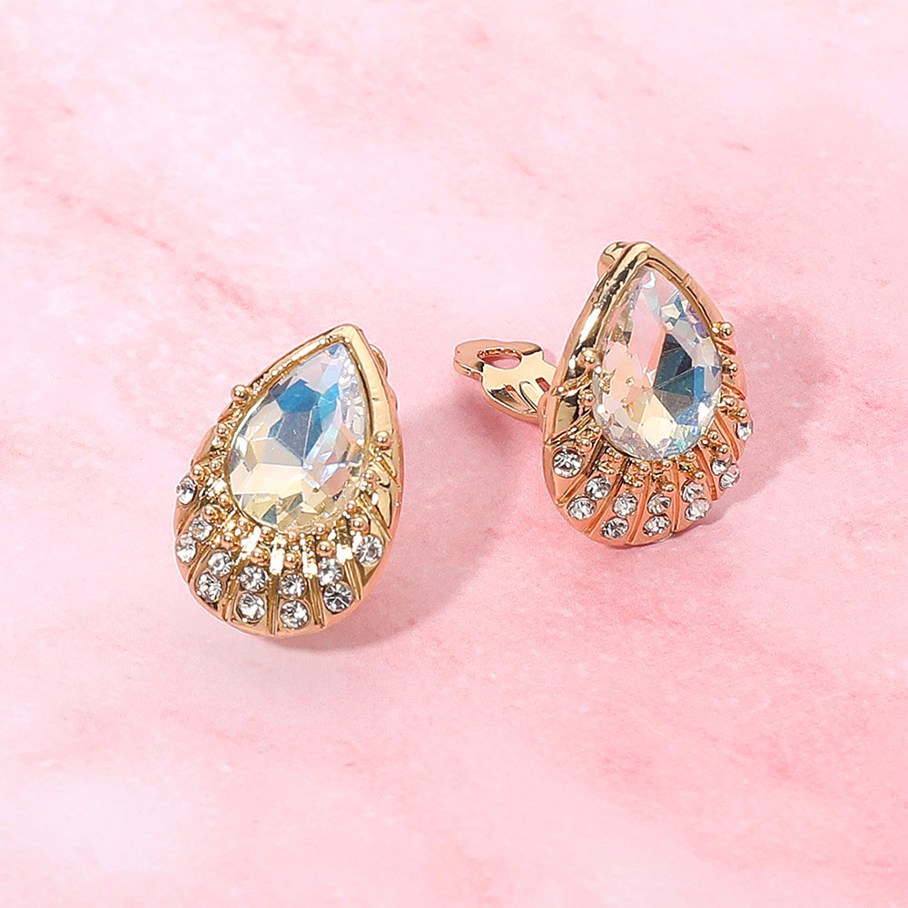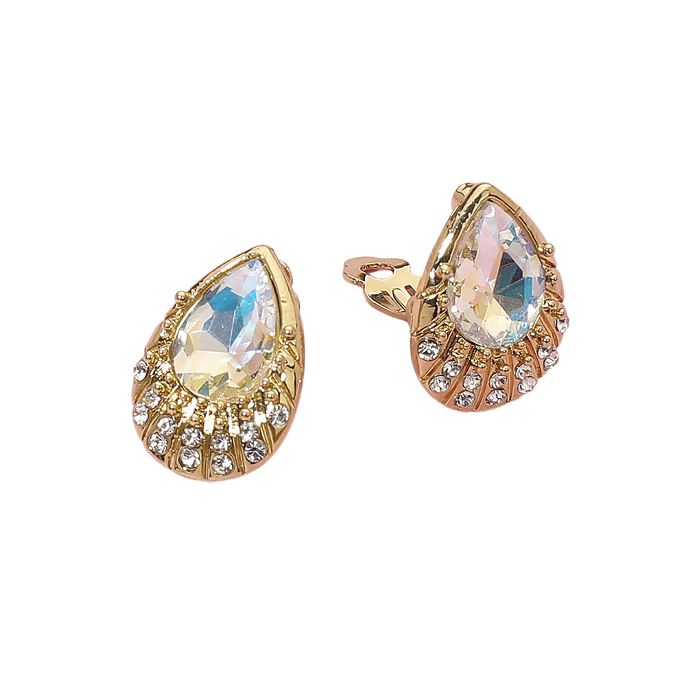 Details • Size : 0.7" X 0.9" • Clip On • Elevate your look with these teardrop-shaped clip-on earrings featuring a luminous faceted crystal surrounded by a halo of sparkling accents. Designed for timeless elegance and effortless wear, they bring a touch of brilliance to evening outfits and special occasions alike. • Lead and Nickel Compliant
