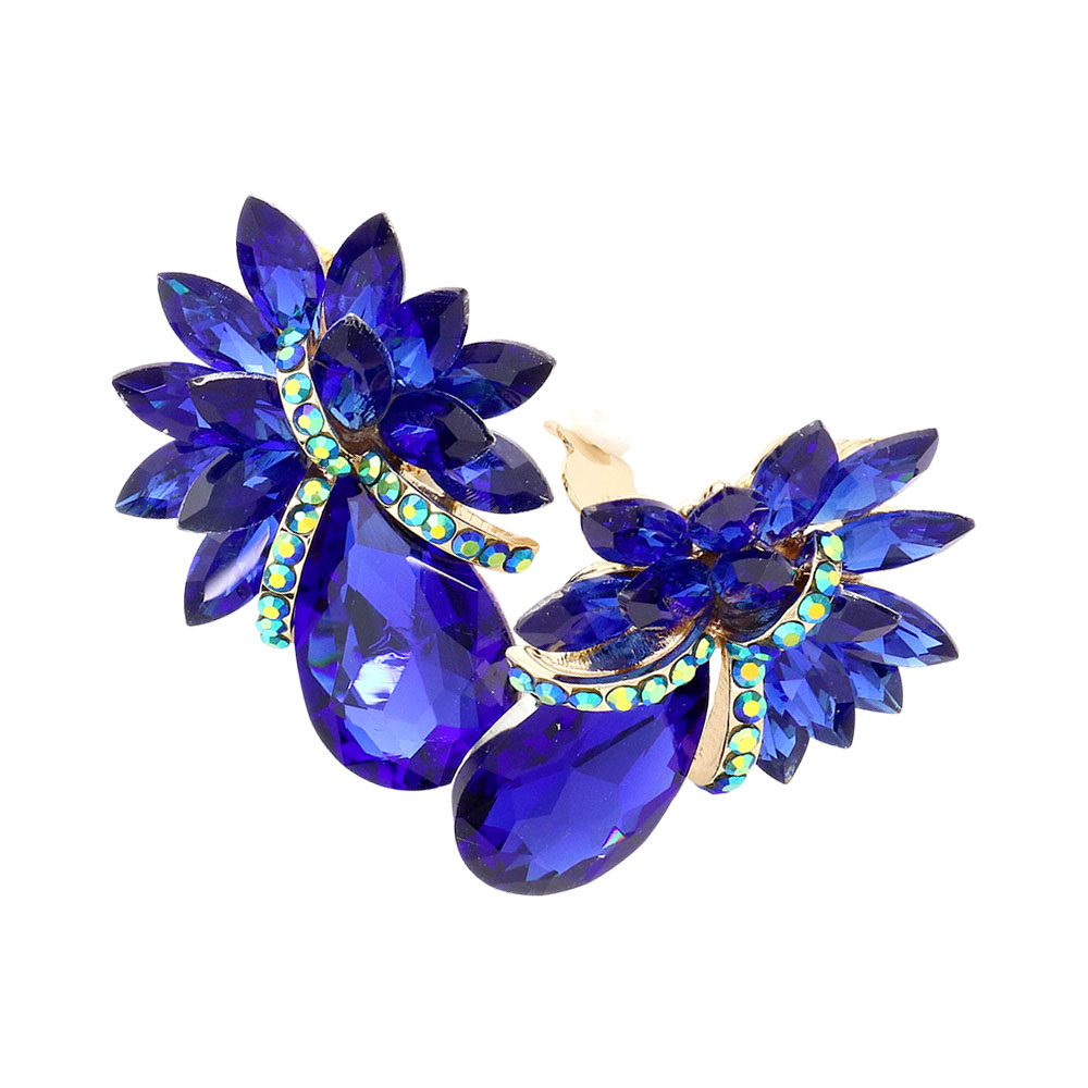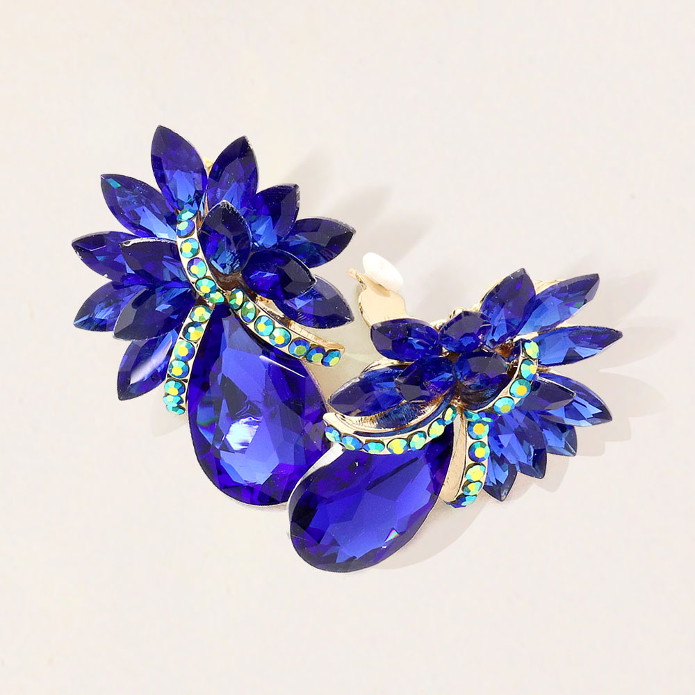 Details • Size : 1.75" X 2.25" • Clip On • Stunning clip-on earrings designed with a leaf cluster arrangement and dazzling crystal accents. These bold statement earrings add a glamorous touch to any outfit, perfect for parties, weddings, and evening events where timeless sophistication meets modern sparkle.