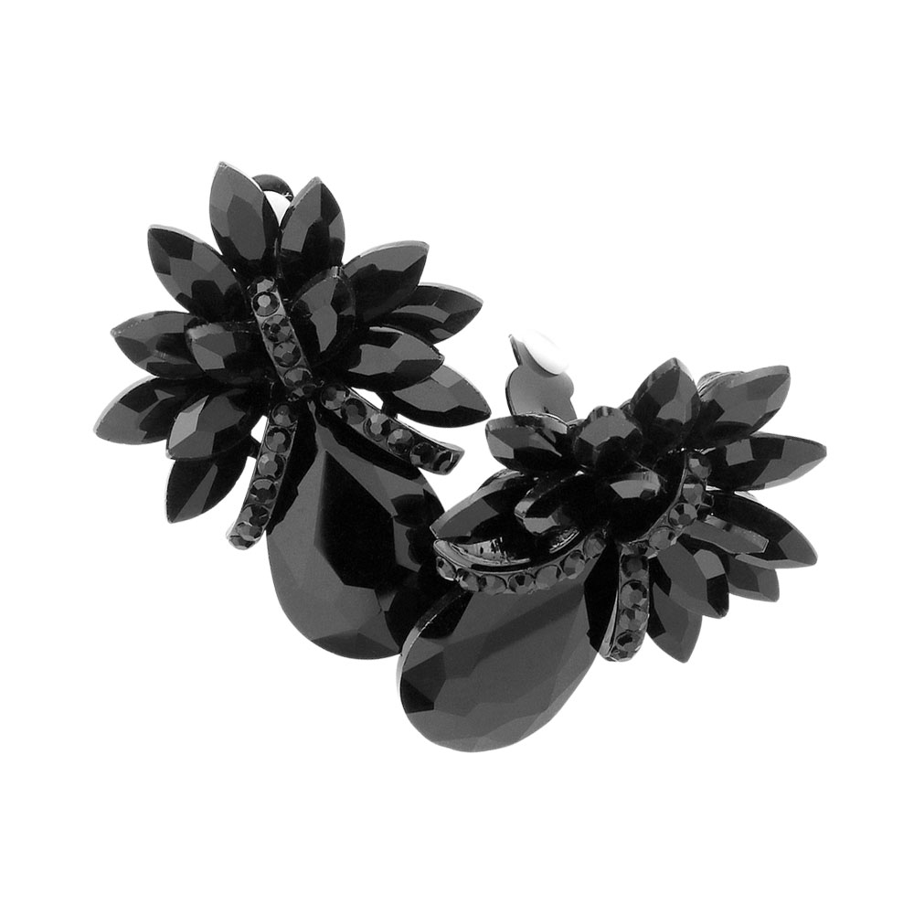Teardrop Stone Accented Clip on Evening Earrings Teardrop Stone Accented Clip on Evening Earrings