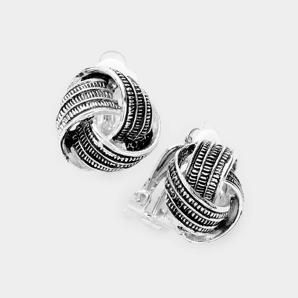 Textured Antique Metal Knot Clip on Earrings