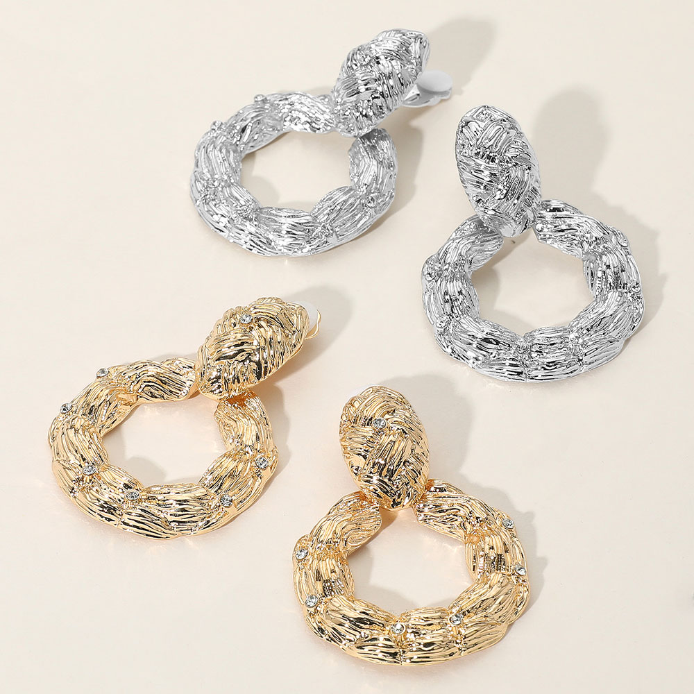 • Elevate your style with these textured hoop clip-on earrings featuring intricate detailing and sparkling crystal accents. Designed for comfort and elegance, they offer a bold yet versatile look perfect for both everyday wear and special occasions, without the need for pierced ears.