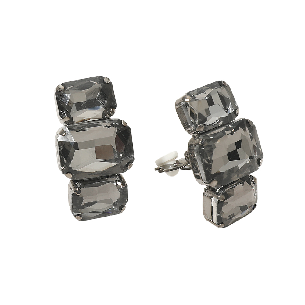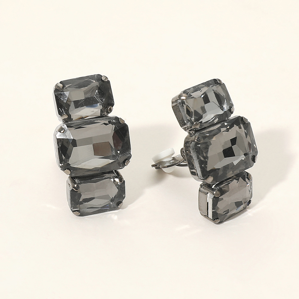 Triple Rectangular Faceted Stone Evening Clip On Earrings Triple Rectangular Faceted Stone Evening Clip On Earrings