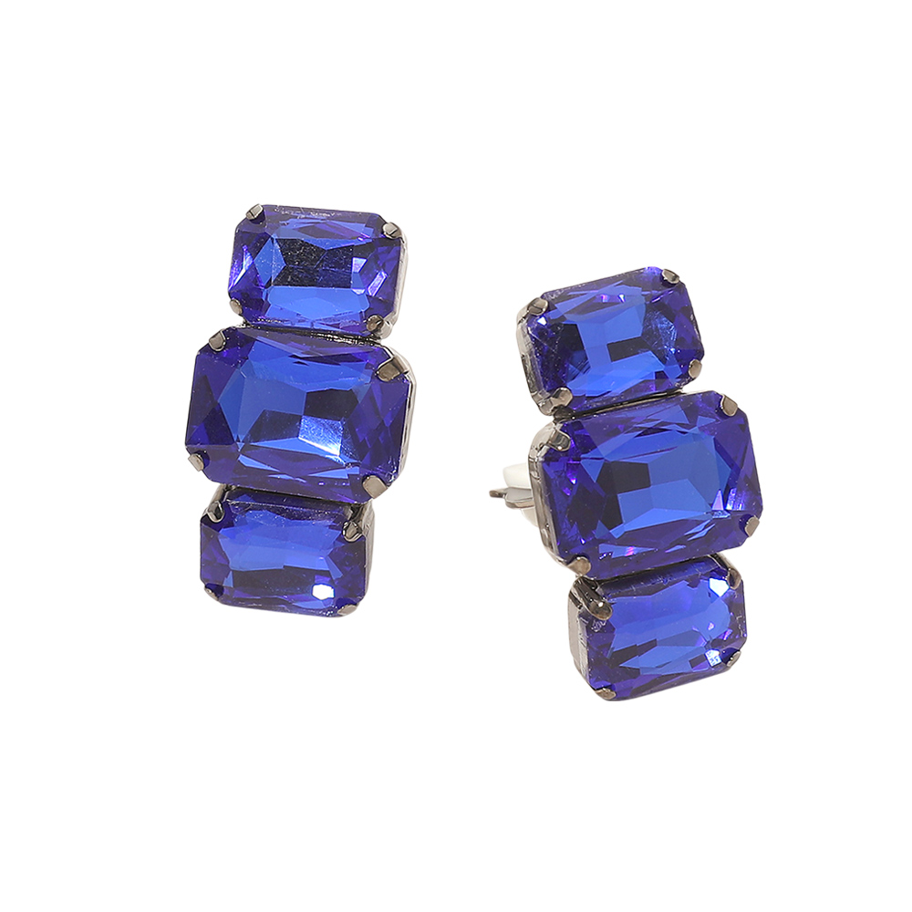 Triple Rectangular Faceted Stone Evening Clip On Earrings Triple Rectangular Faceted Stone Evening Clip On Earrings