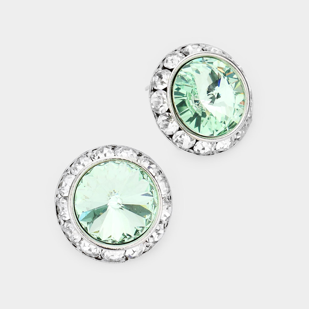 Rivoli Cut Genuine Crystal Round Stud Earrings