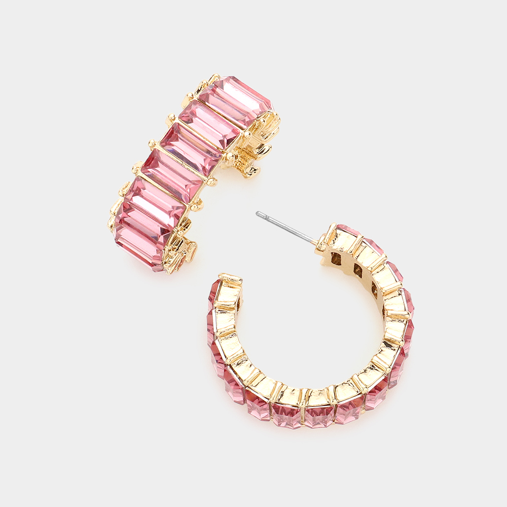 Baguette Stone Cluster Hoop Evening Earrings