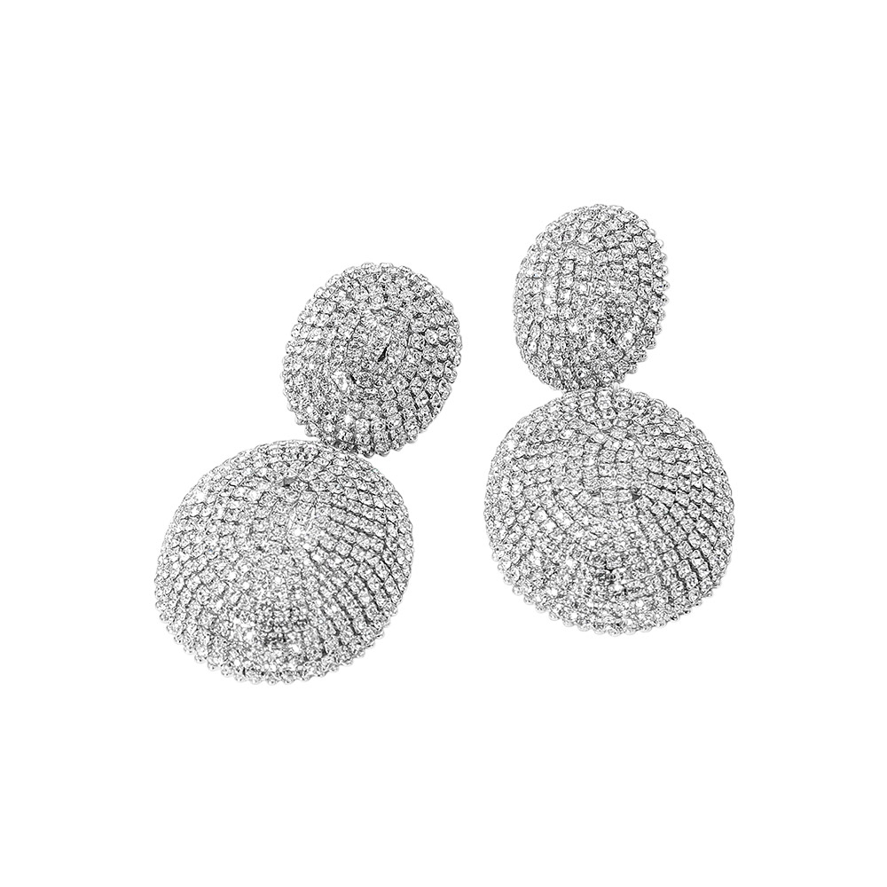 • Statement pavĂ© dome drop earrings designed with a layered rounded silhouette that delivers bold shine and eye-catching dimension. This elevated style adds instant glamour to evening looks, special events, and boutique collections, offering timeless appeal with a modern statement finish.