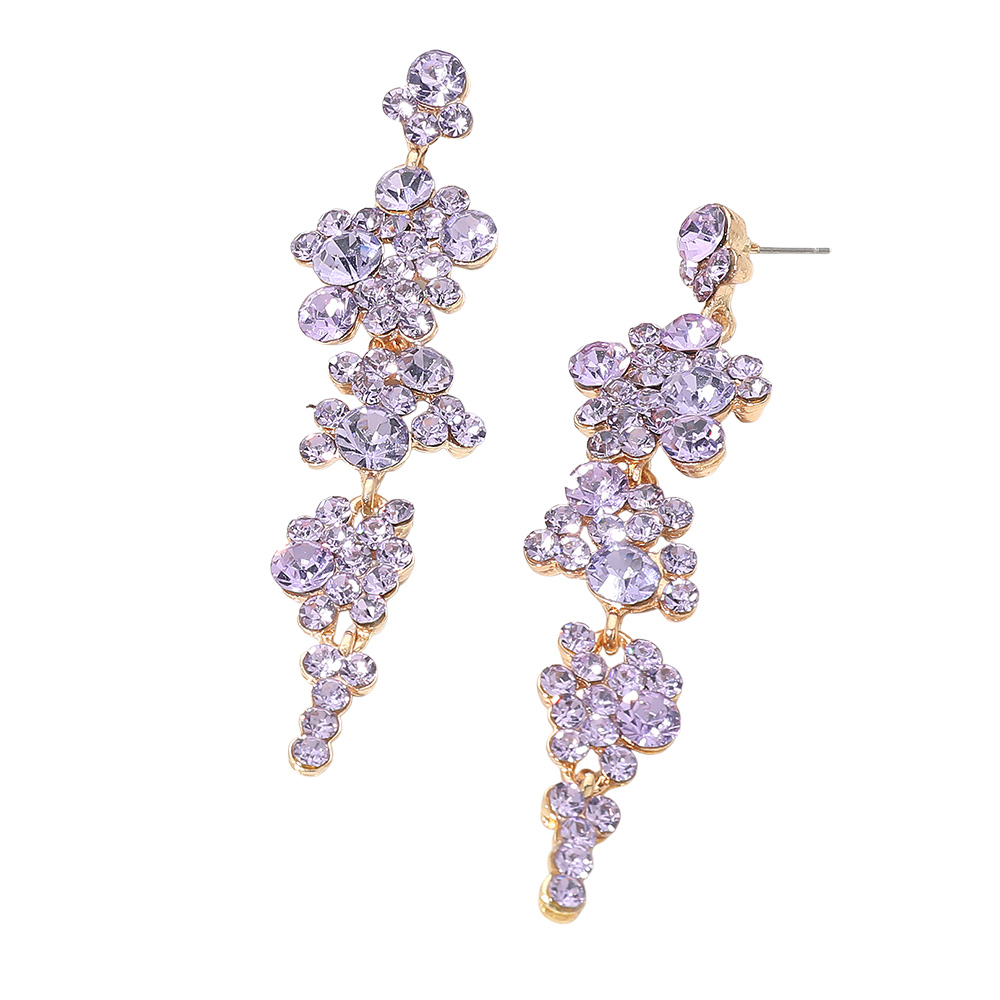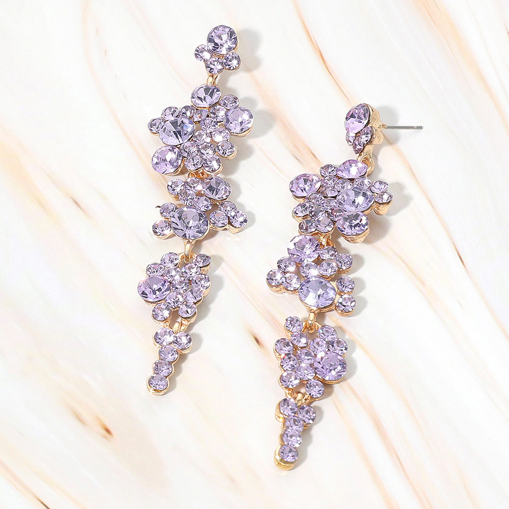 Details • Size : 0.75" X 3.25" • Post Back • Statement drop earrings featuring cascading floral clusters with dimensional sparkle and elegant movement. Designed to elevate evening looks, special occasions, and fashion-forward styling, these eye-catching earrings add drama, texture, and refined shine to any jewelry assortment. • Lead and Nickel Compliant