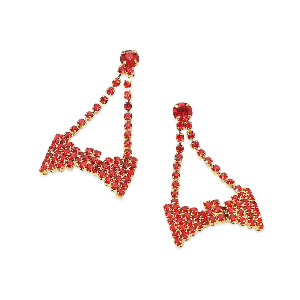 Details • Size : 0.9" X 1.75" • Post Back • Statement bow drop earrings designed with cascading sparkle and eye-catching movement. Perfect for party looks, holiday styling, performances, and boutique collections, these earrings add playful elegance and dramatic shine to any outfit while offering lightweight comfort and standout visual appeal for special occasions and trend-forward displays.