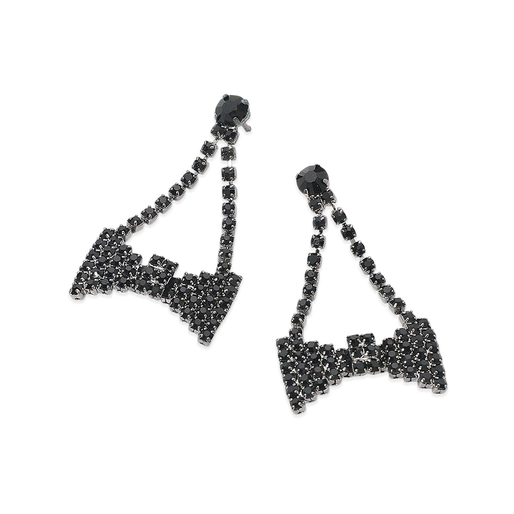 Details • Size : 0.9" X 1.75" • Post Back • Statement bow drop earrings designed with cascading sparkle and eye-catching movement. Perfect for party looks, holiday styling, performances, and boutique collections, these earrings add playful elegance and dramatic shine to any outfit while offering lightweight comfort and standout visual appeal for special occasions and trend-forward displays.