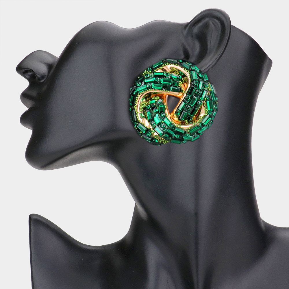 Cylinder Stone Embellished Round Post Earrings