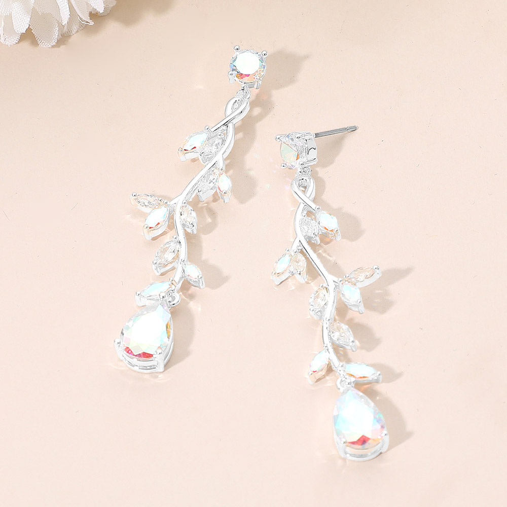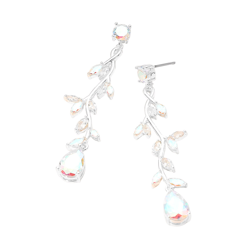 • These elegant drop earrings feature a delicate vine-inspired design adorned with sparkling cz crystal accents. Perfect for weddings, formal events, or special evenings, they offer a refined touch of glamour and grace that enhances any outfit with timeless sophistication and shimmer.