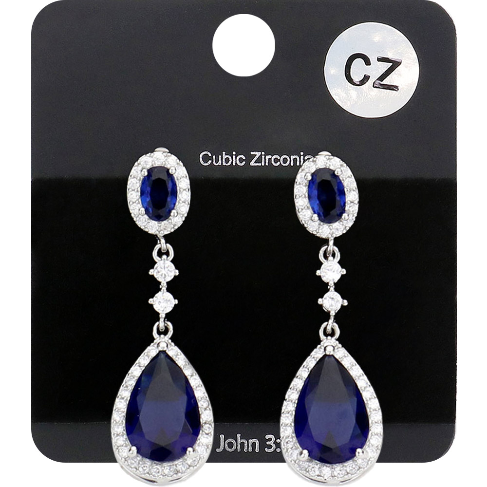 CZ Teardrop Accented Dangle Evening Earrings