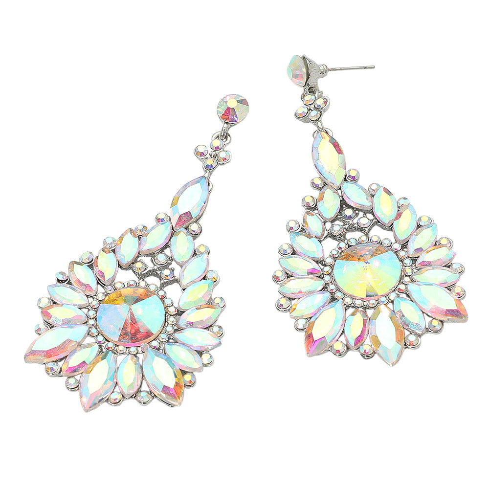 • Make an unforgettable impression with these statement teardrop crystal earrings. Designed with intricate faceted stones in a radiant arrangement, they capture light beautifully for a luxurious look—perfect for evening events, weddings, and glamorous nights out.