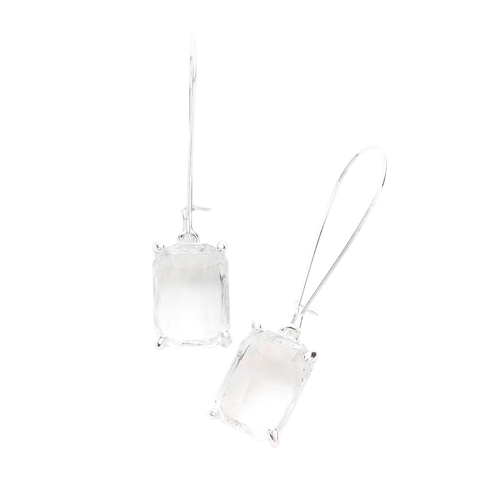 • These minimalist crystal drop earrings feature sleek rectangular stones suspended from delicate loops for a modern, refined look. Perfect for everyday wear or formal occasions, they add just the right touch of sparkle and sophistication to elevate any outfit effortlessly.