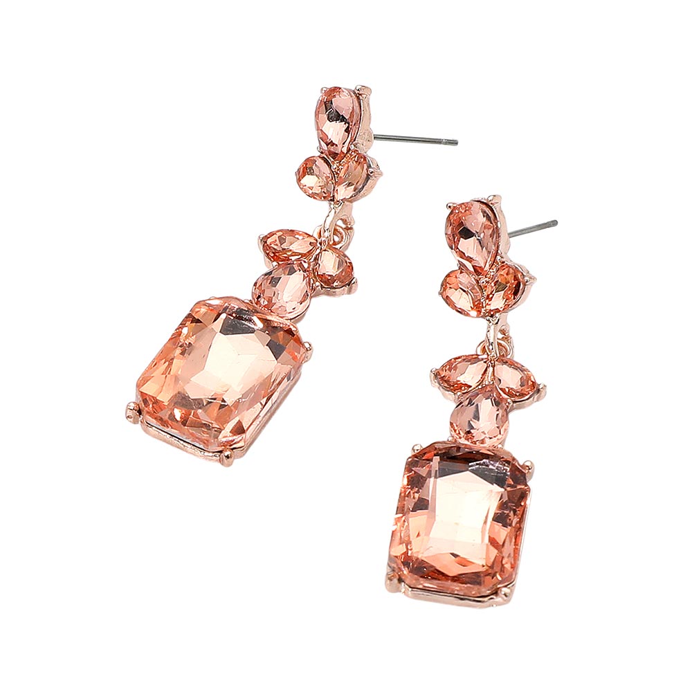 • These geometric drop statement earrings feature a bold, faceted design with a cascading arrangement of gem-like shapes. Perfect for adding a touch of sophistication to evening looks, they combine modern elegance with timeless glamour—ideal for special occasions or chic events.