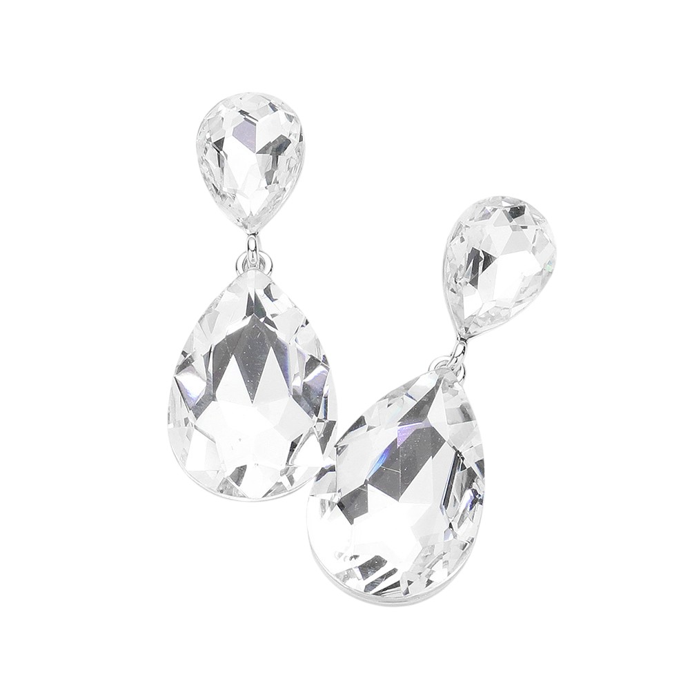 • Glamorous faceted teardrop dangle earrings featuring a radiant crystal-cut design that catches the light beautifully. Lightweight and sophisticated, these statement earrings elevate evening outfits, weddings, or special occasions with timeless elegance and refined sparkle.