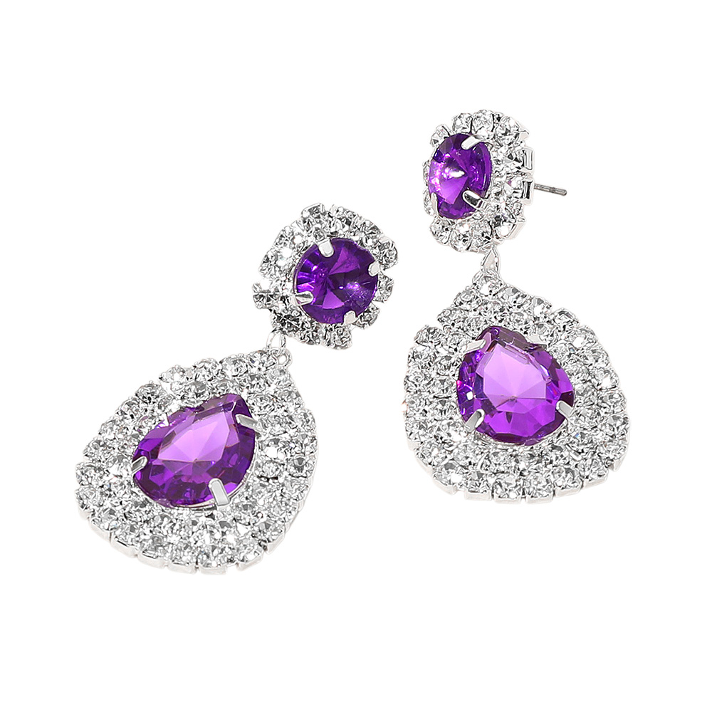• Elegant teardrop statement earrings featuring a brilliant halo of crystals and a shimmering centerpiece. Perfect for weddings, formal events, or glamorous nights out, these earrings add radiant sparkle and sophistication to any outfit while ensuring timeless appeal.