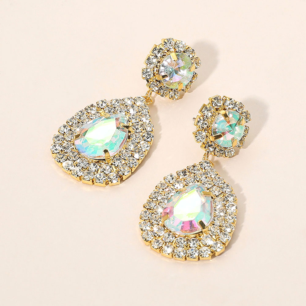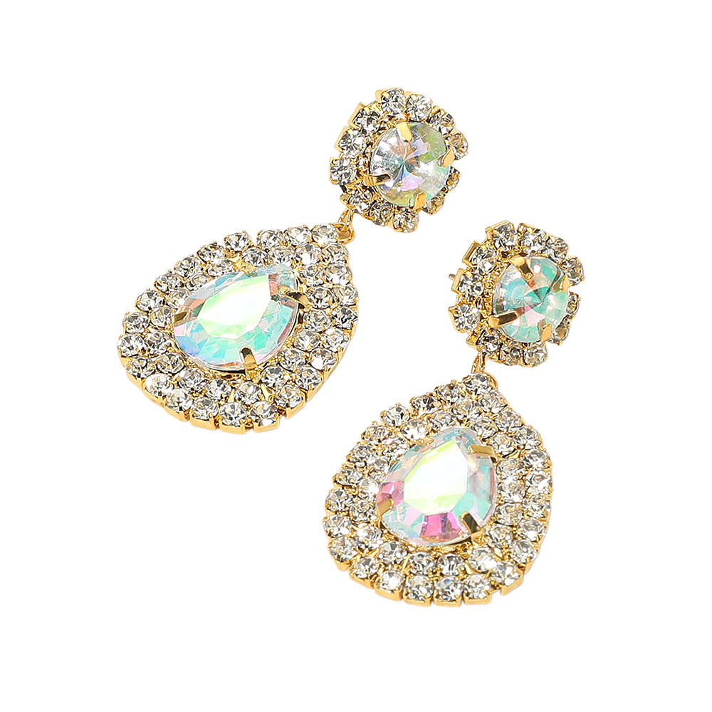 • Elegant teardrop statement earrings featuring a brilliant halo of crystals and a shimmering centerpiece. Perfect for weddings, formal events, or glamorous nights out, these earrings add radiant sparkle and sophistication to any outfit while ensuring timeless appeal.