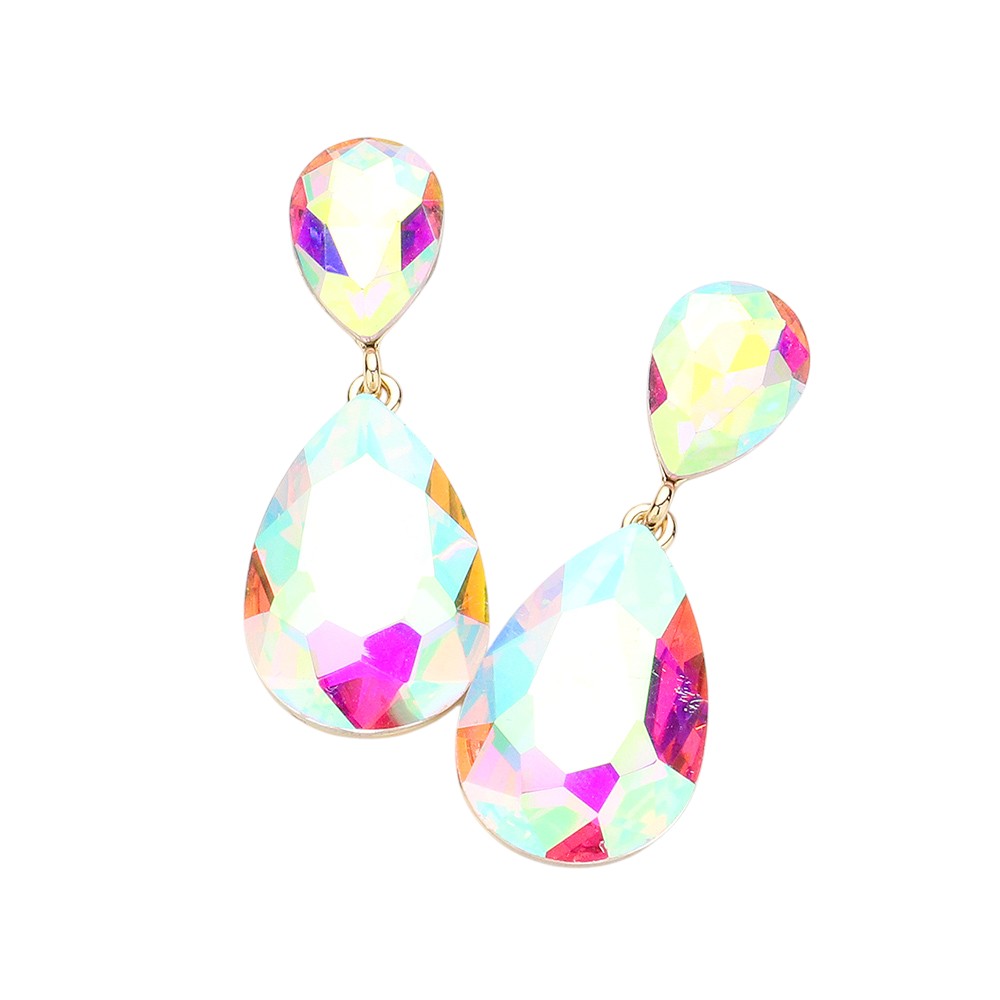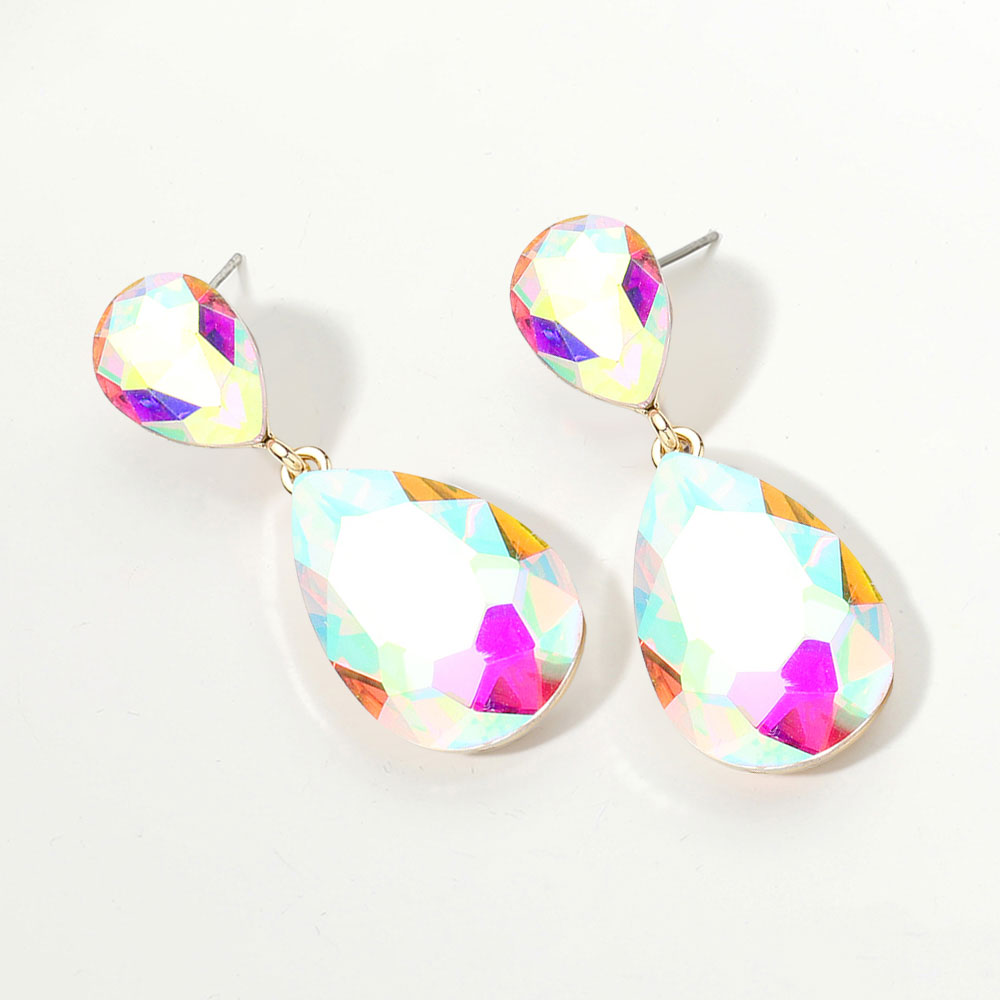 • Glamorous faceted teardrop dangle earrings featuring a radiant crystal-cut design that catches the light beautifully. Lightweight and sophisticated, these statement earrings elevate evening outfits, weddings, or special occasions with timeless elegance and refined sparkle.