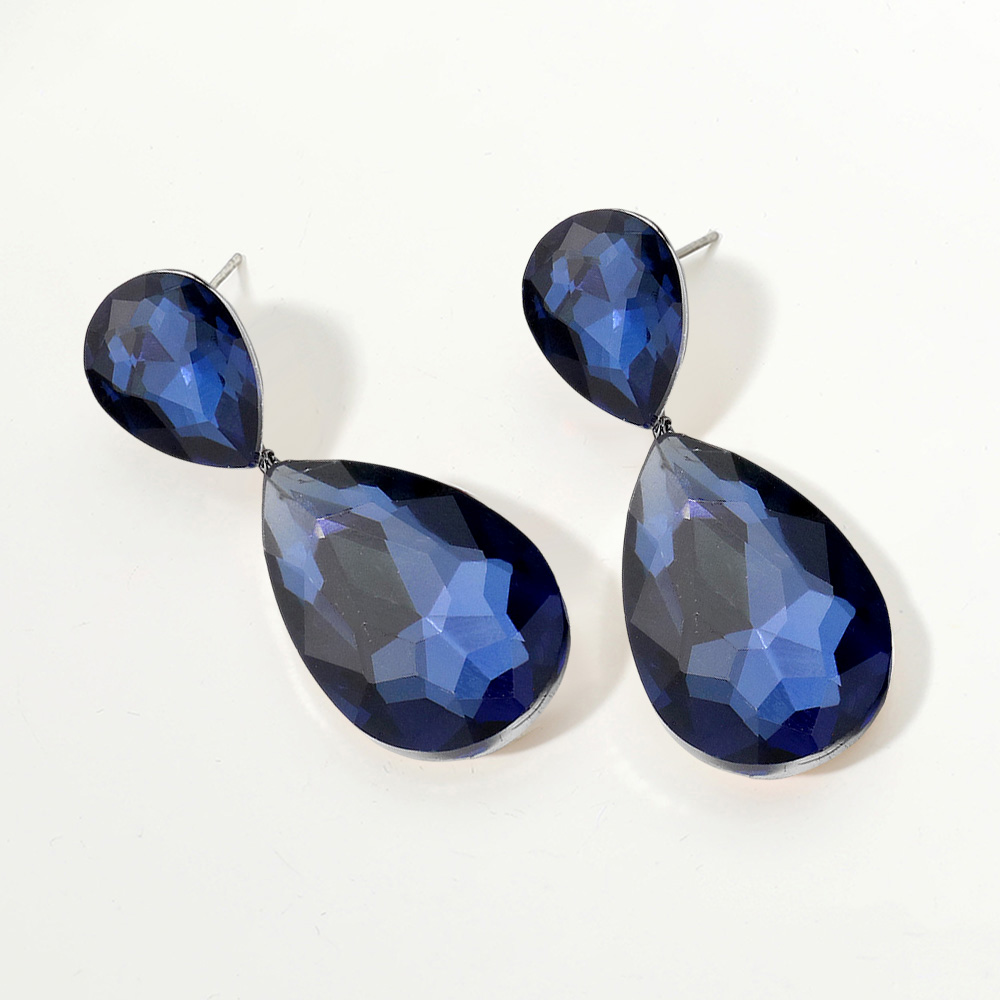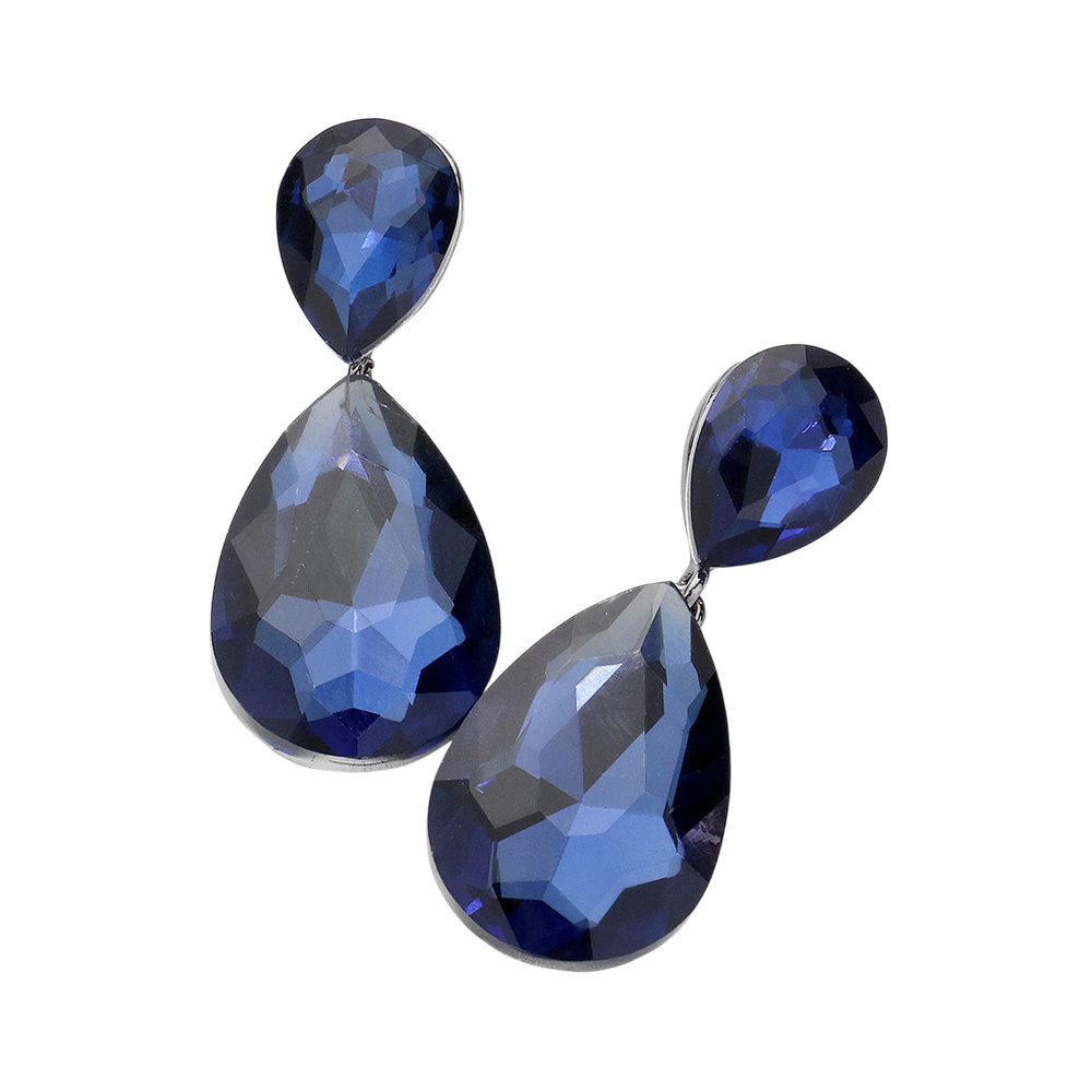 • Glamorous faceted teardrop dangle earrings featuring a radiant crystal-cut design that catches the light beautifully. Lightweight and sophisticated, these statement earrings elevate evening outfits, weddings, or special occasions with timeless elegance and refined sparkle.