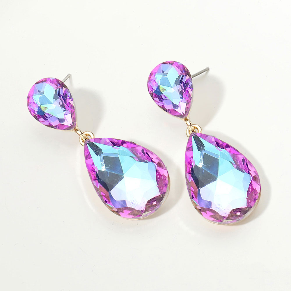 Glass Crystal Teardrop Dangle Earrings