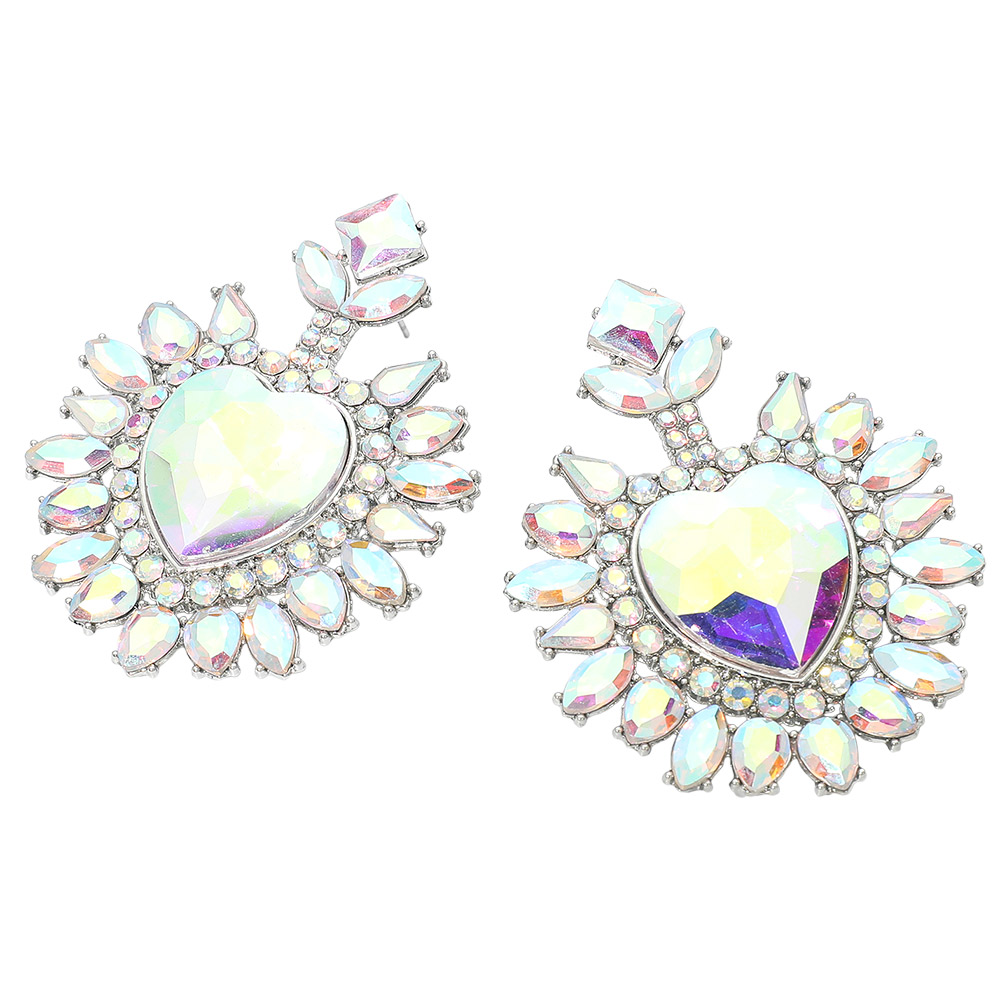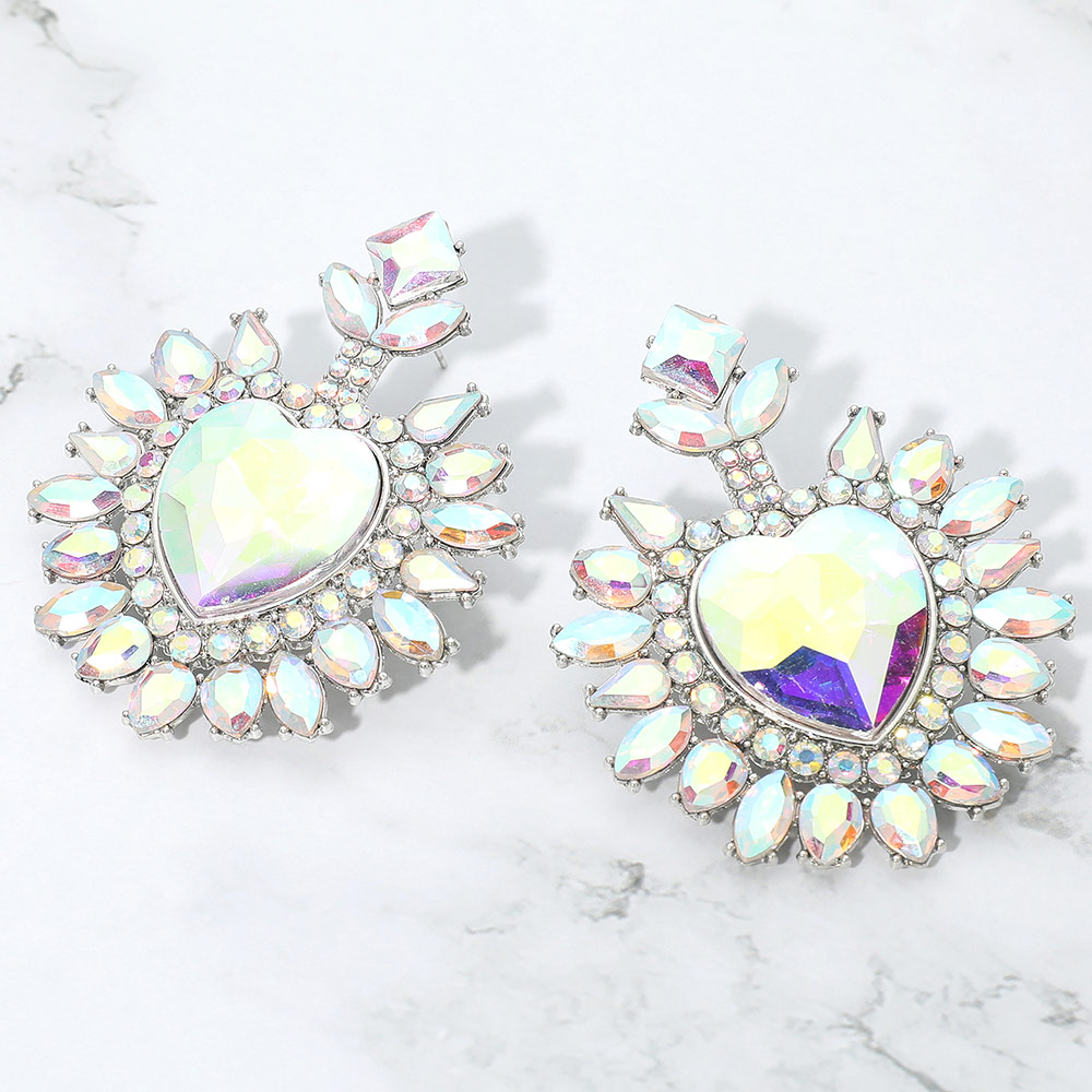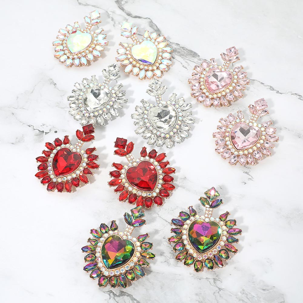 • Heart crystal statement drop earrings featuring a bold faceted center and radiant surrounding details. Designed to catch the light from every angle, this dramatic yet elegant style is perfect for special occasions, evening wear, and boutique collections seeking standout, romantic jewelry with strong visual impact.