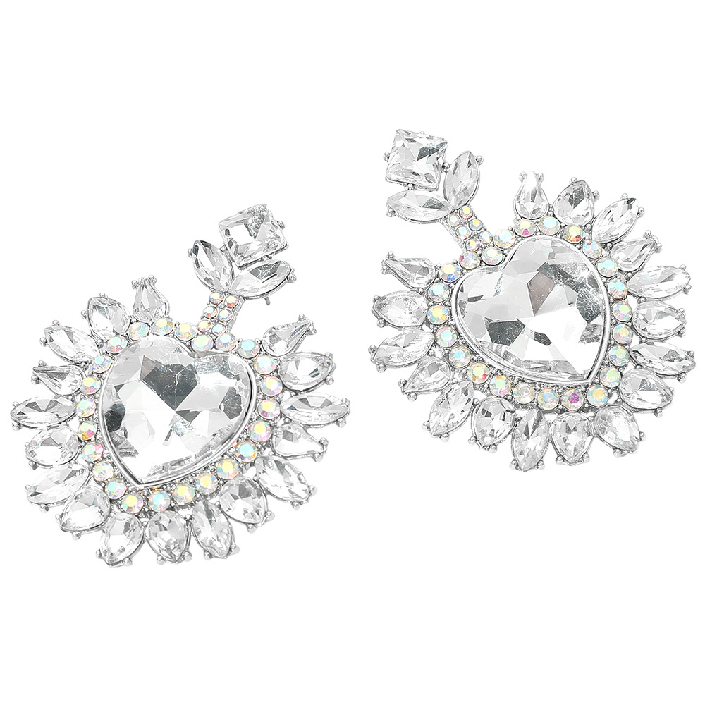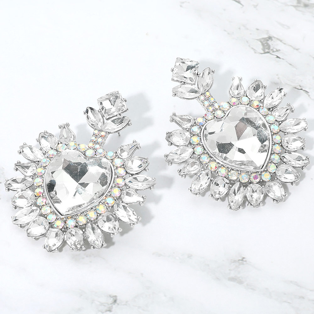 • Heart crystal statement drop earrings featuring a bold faceted center and radiant surrounding details. Designed to catch the light from every angle, this dramatic yet elegant style is perfect for special occasions, evening wear, and boutique collections seeking standout, romantic jewelry with strong visual impact.
