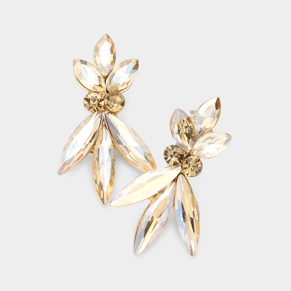 Floral Marquise Teardrop Stone Cluster Accent Dangle Evening Earrings