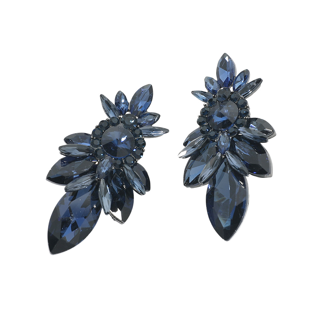 Details • Size : 1.25" X 2.3" • Post Back • Radiant iridescent cluster earrings with marquise and round-cut stones that shimmer beautifully from every angle. A striking accessory perfect for evening events, weddings, or festive occasions to add a bold sparkle. • Lead and Nickel Compliant