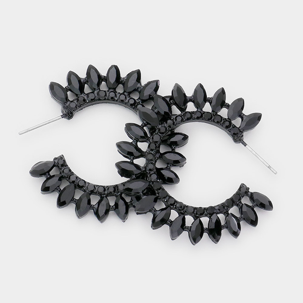 Marquise Stone Cluster Half Hoop Evening Earrings