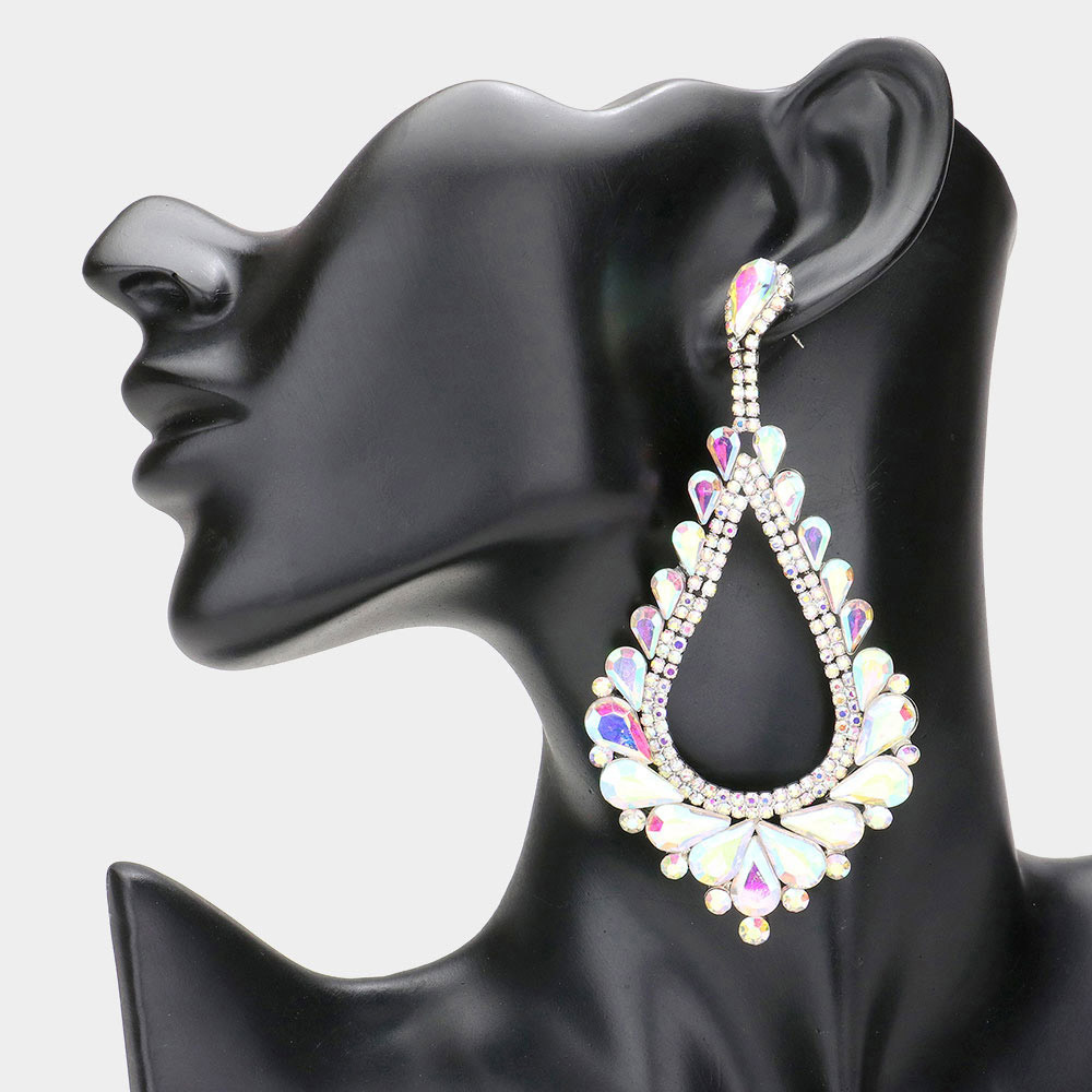 Oversized Cutout Teardrop Cluster Vine Evening Earrings