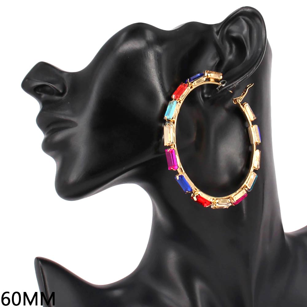 Oversized Glass Stone Evening Hoop Earrings Oversized Glass Stone Evening Hoop Earrings