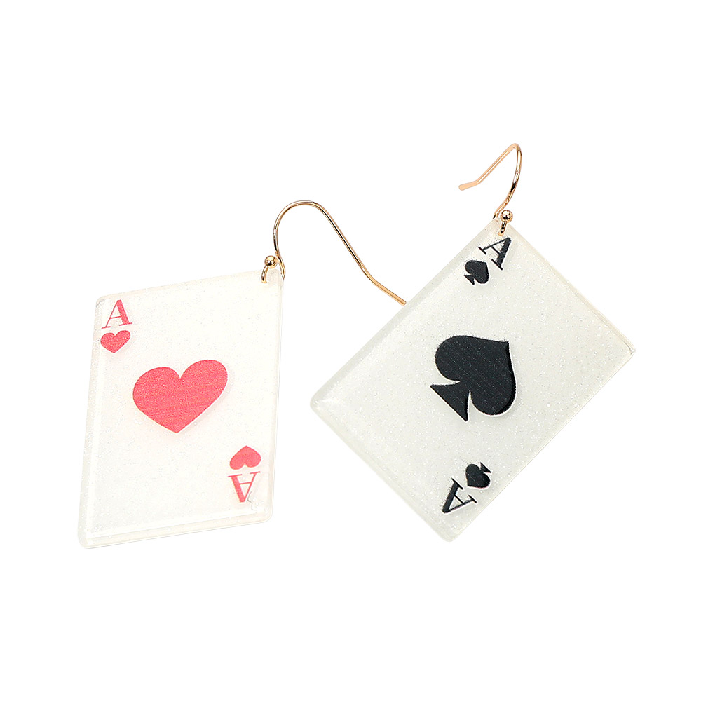 Details • Size : 1" X 2" • Fish Hook Back • Make a bold statement with these Ace playing card drop earrings, featuring the iconic heart and spade design. Their playful and unique charm adds a fun twist to your style. Perfect for casino nights, themed events, or anyone who loves to accessorize with confidence and flair. • Lead and Nickel Compliant